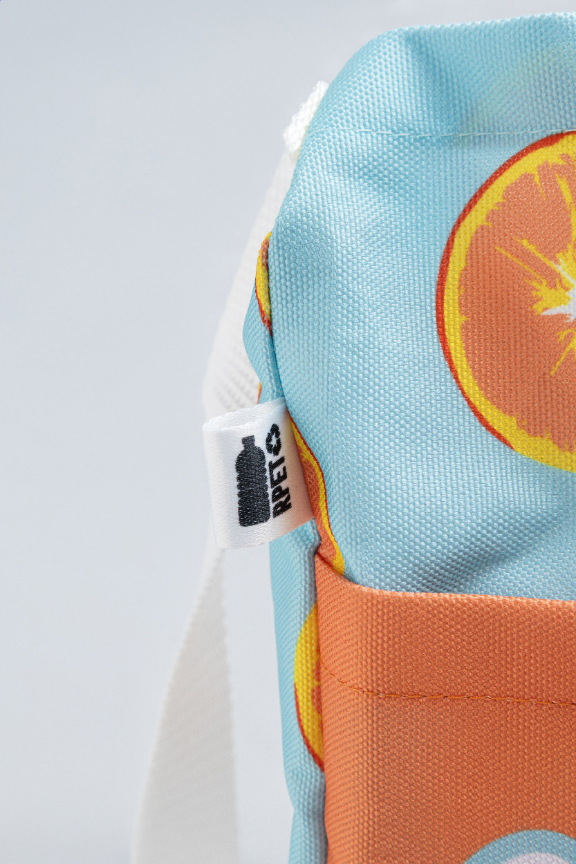 Torba na ramię wykonana na zamówienie z poliestru 600D RPET z regulowanym paskiem na ramię i przednią kieszenią zapinaną na guzik. Z nadrukiem sublimacyjnym na całej powierzchni i charakterystyczną metką RPET. Min. ilość: 25 szt.