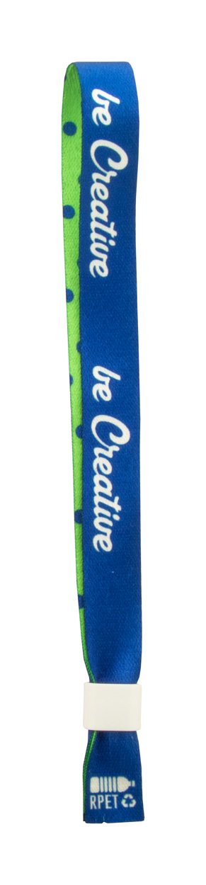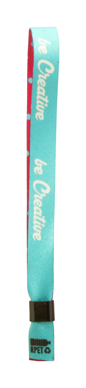 Personalizowana festiwalowa bransoletka z poliestru RPET z kolorowym plastikowym zamkiem zabezpieczającym. Z grafiką nadrukowaną metodą sublimacji po obu stronach. Min. ilość: 100 szt.