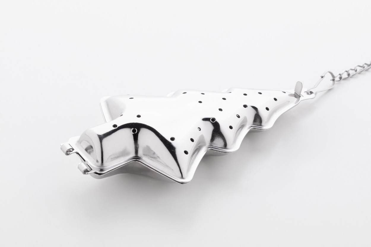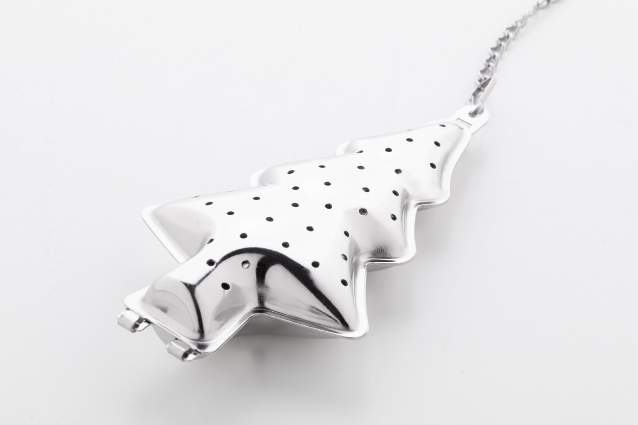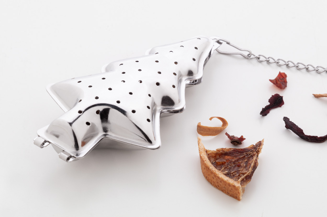 Świąteczny zaparzacz do herbaty ze stali nierdzewnej z łańcuszkiem i klipsem. Z obszarem do zadrukowania po jednej stronie.