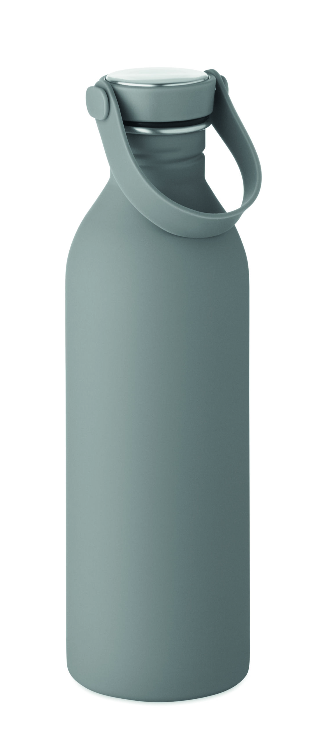 Jednościenna butelka 90% stal nierdzewna z recyklingu 10% stal nierdzewna. Gumowe wykończenie. Pokrywka z PP i SS sylikonowy uchwyt. 500 ml. Butelka jednościenna, może występować przenoszenie ciepła.