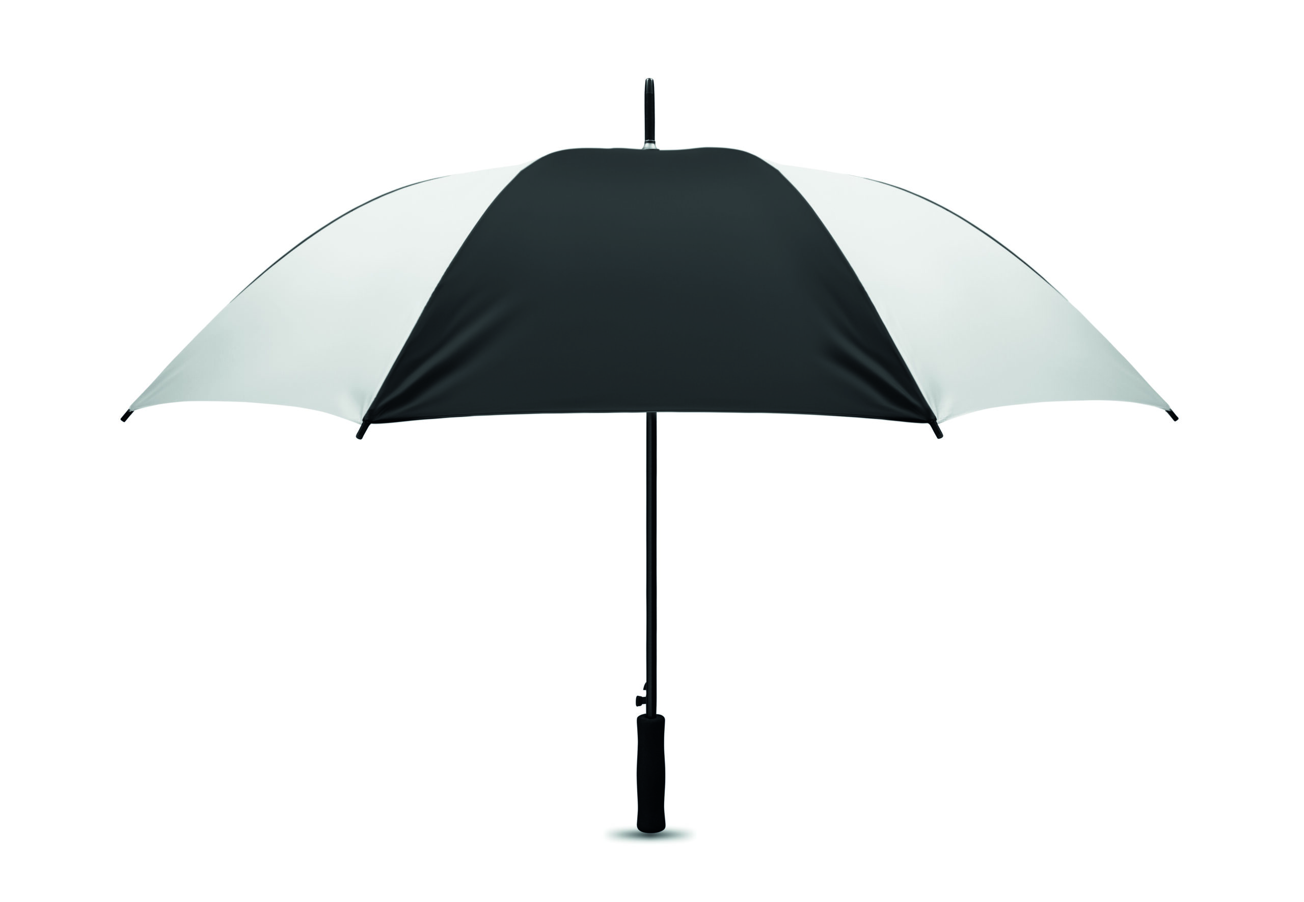 Parasol automatycznie otwierany o średnicy 27 cali. Wykonany z poliestru pongee 190T, prosta rączka z EVA. Czarny lakierowany stelaż i czarne plastikowe końcówki. Zamykany manualnie.