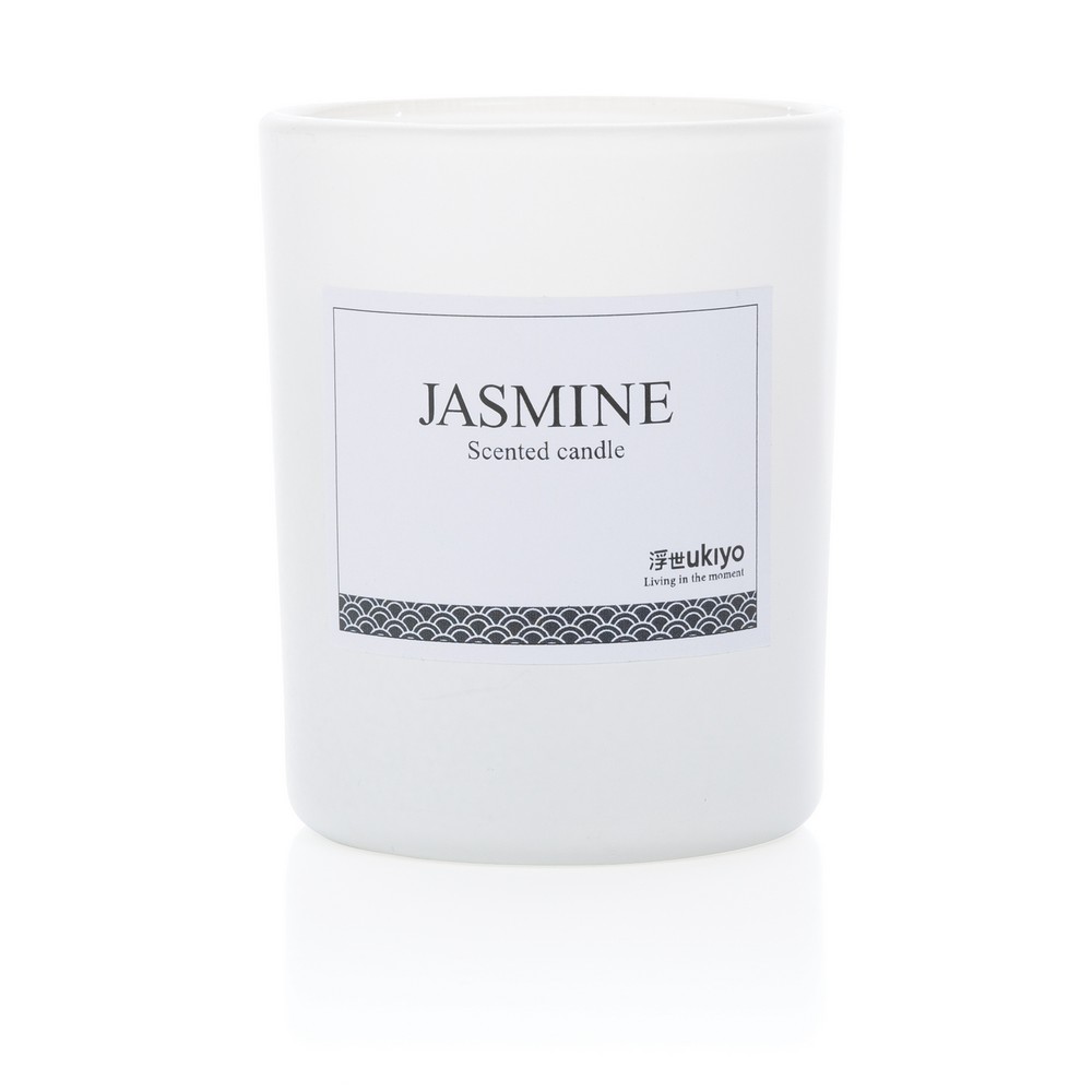 Mała świeczka zapachowa w szklanym słoiku, zapach jaśminowy, ślad węglowy produktu: 0,52 kg CO2