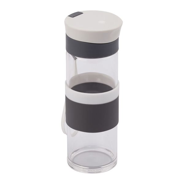Szczelny bidon o pojemności 440 ml. Wykonany ze specjalnego szkła borokrzemowego, które jest nadzwyczaj przyjazne naszemu zdrowiu, a także lżejsze od tradycyjnego szkła. Bidon wyposażony jest w uchwyt na nadgarstek, opaskę do trzymania oraz szczelne zamknięcie typu leak proof zapobiegające wyciekaniu płynów. Nie zawiera BPA.