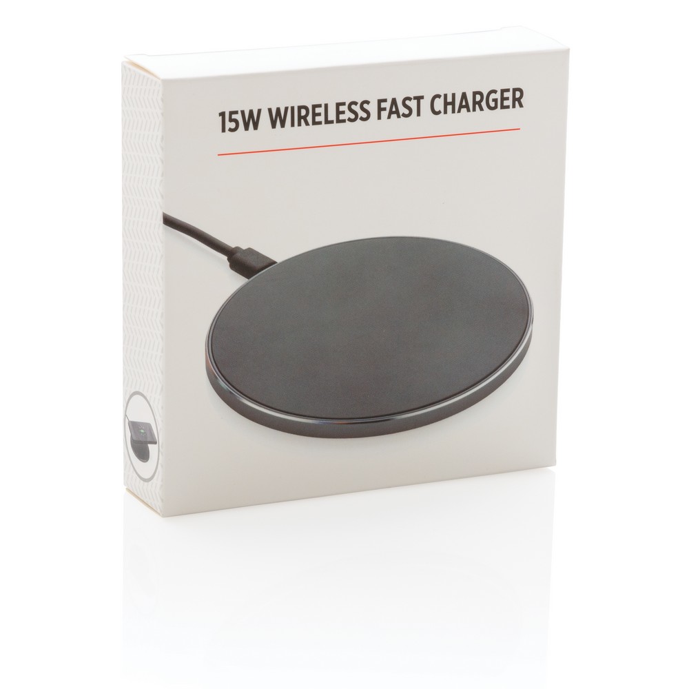 Ładowarka bezprzewodowa 15W, wykonana ze stopu aluminium, funkcja szybkiego ładowania 15W, ładowanie telefonu 3 razy szybsze niż większość ładowarek bezprzewodowych dostępnych na rynku, bezprzewodowe ładowanie jest kompatybilne ze wszystkimi urządzeniami posiadającymi możliwość ładowania indukcyjnego, wejście 5V/2A, wyjście 5V/1A, wejście szybkiego ładowania 9V/2A, wyjście szybkiego ładowania 9V/1.6A, kabel micro USB 150 cm w komplecie, wzór zastrzeżony®