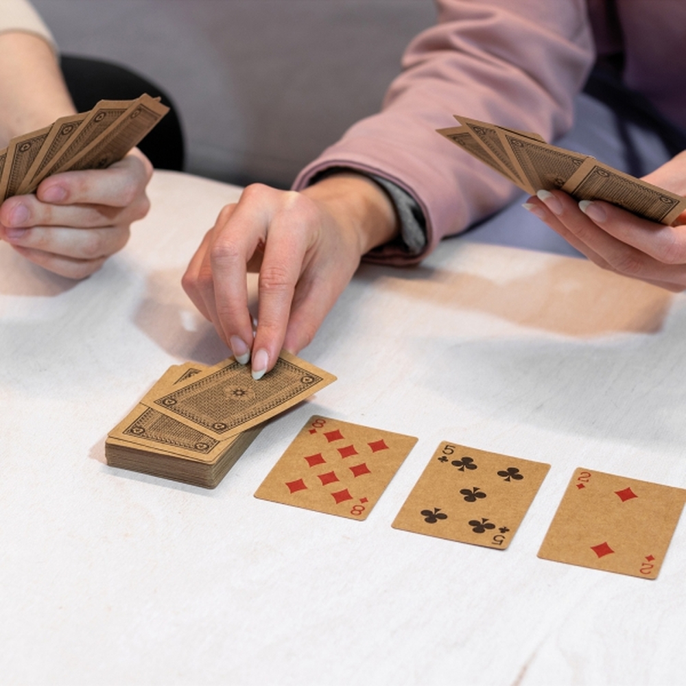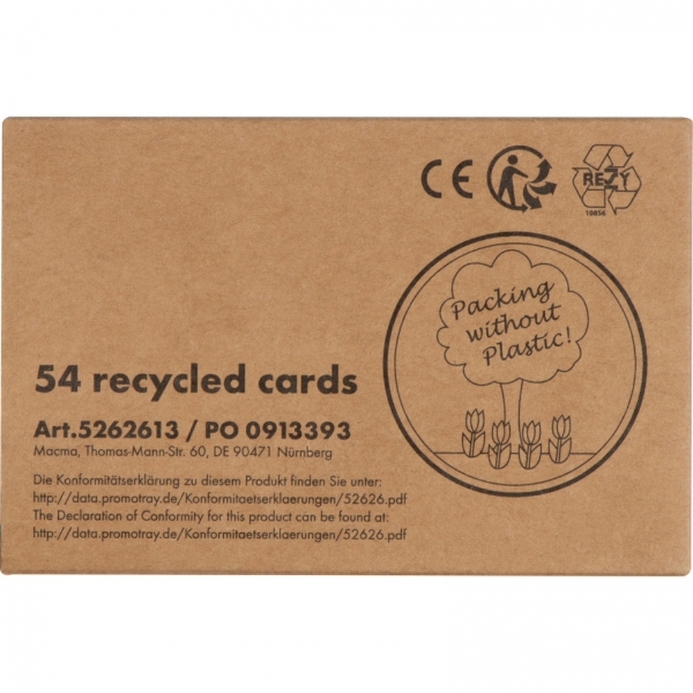 Talia kart wykonana z papieru pochodzącego z recyklingu, opakowana w tekturowe etui.