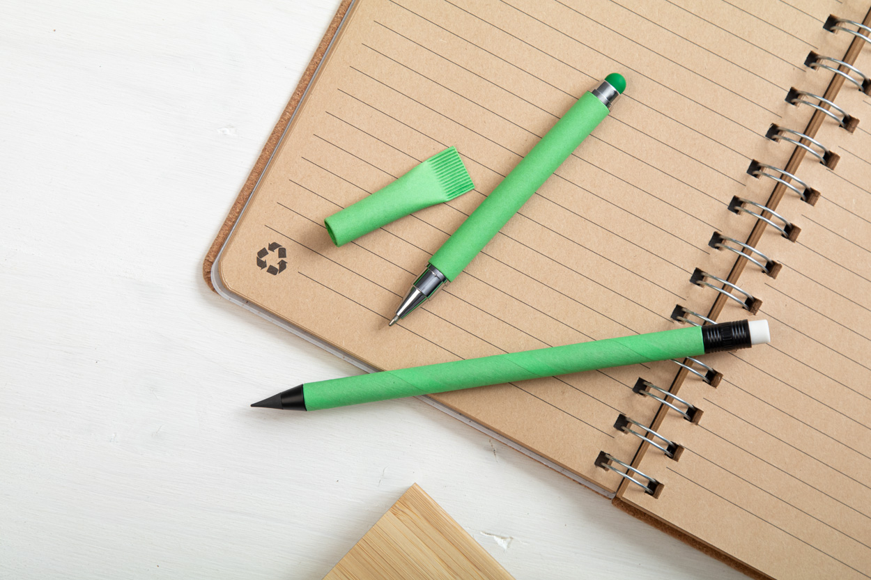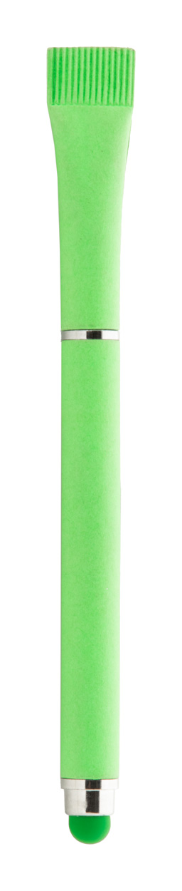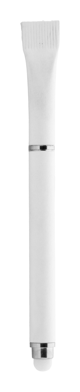 Długopis z papieru z recyklingu z gumką do ekranów dotykowych z dopasowaną kolorystycznie zakrywką. Niebieski wkład.