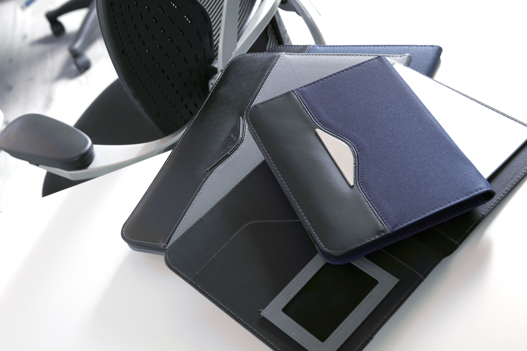Teczka konferencyjna A4 z notatnikiem (30 kartek w linie), 2 duże kieszenie wewnętrzne, 2 kieszenie na wizytówki, miejsce na przybory do pisania (nie dołączone)