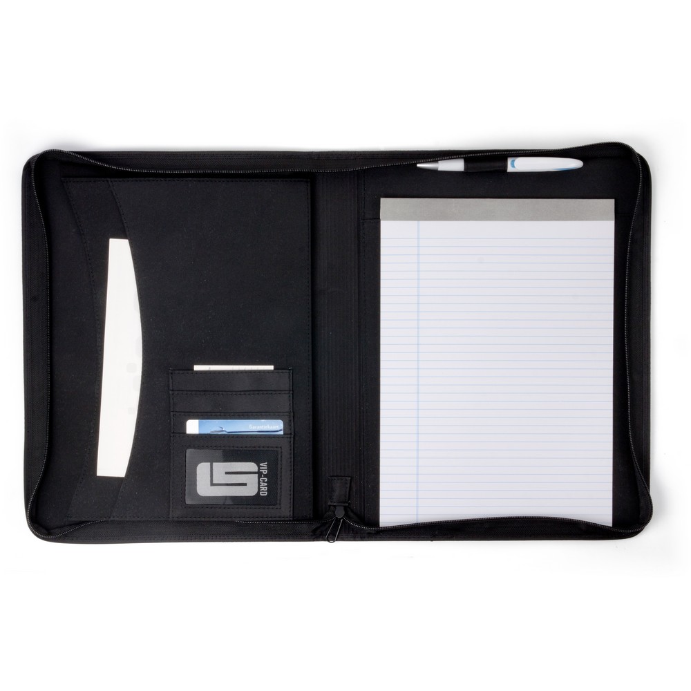 Teczka konferencyjna ok. A4 na zamek z notatnikiem (30 kartek w linie), 2 duże kieszenie i 4 mniejsze, bez przyborów do pisania