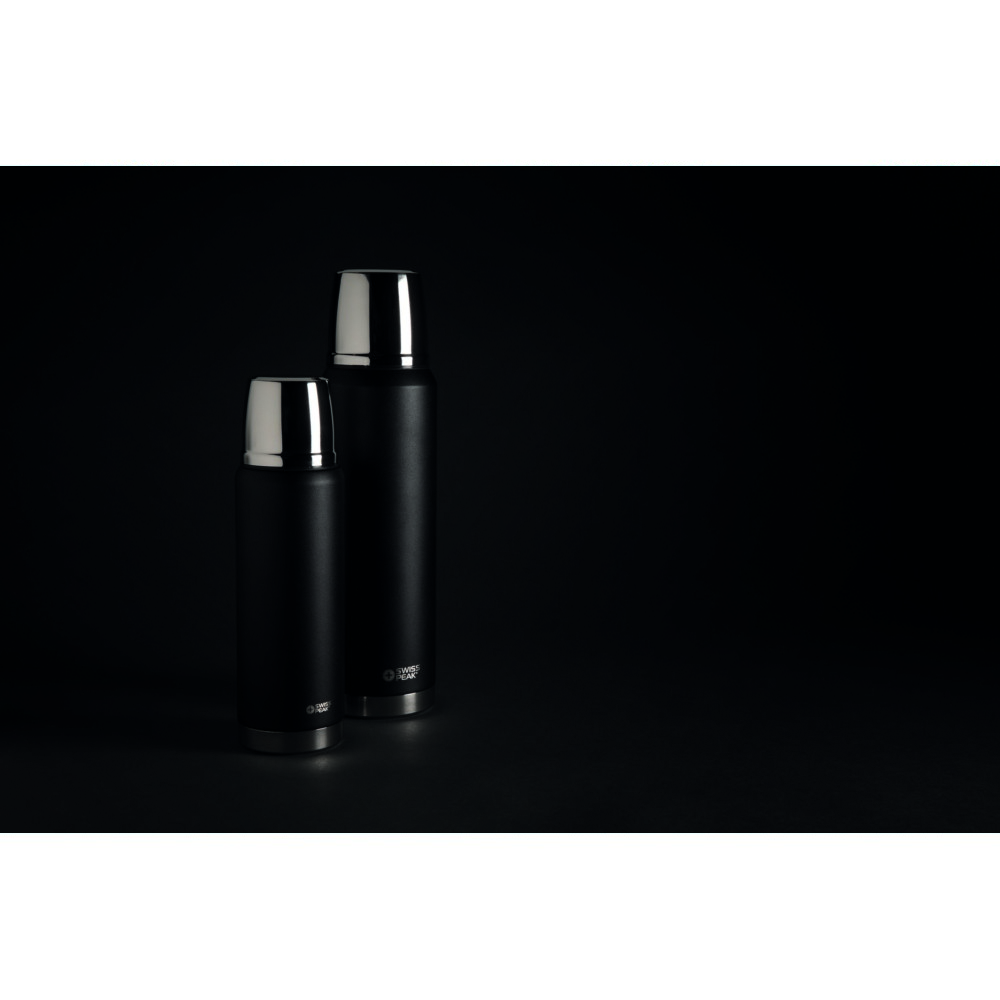 Termos 500 ml z izolacją próżniową, podwójne ścianki, wnętrze ze stali nierdzewnej 18/8, powlekany proszkowo czarny kolor cechujący się niezwykłą trwałością i odpornością na wyblaknięcie czy popękanie, ściana wewnętrzna pokryta miedzią o wysokim poziomie przewodnictwa, wyłącznie mycie ręczne, utrzymuje temperaturę napojów gorących do 20 godzin oraz zimnych do 24 godzin +leakproof