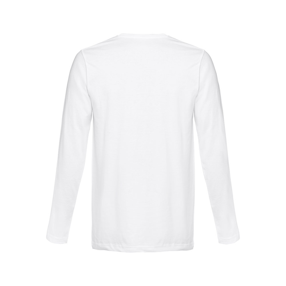 Męski t-shirt z długim rękawem. 100% bawełna dżersej (150 g/m²) ze zgrzebną przędzą bawełnianą. Posiada 1×1 prążkowany kołnierzyk ze wzmacniającą taśmą z dżerseju. Koszulka o regularnym kroju z podwójnym szwem na rękawach i u dołu