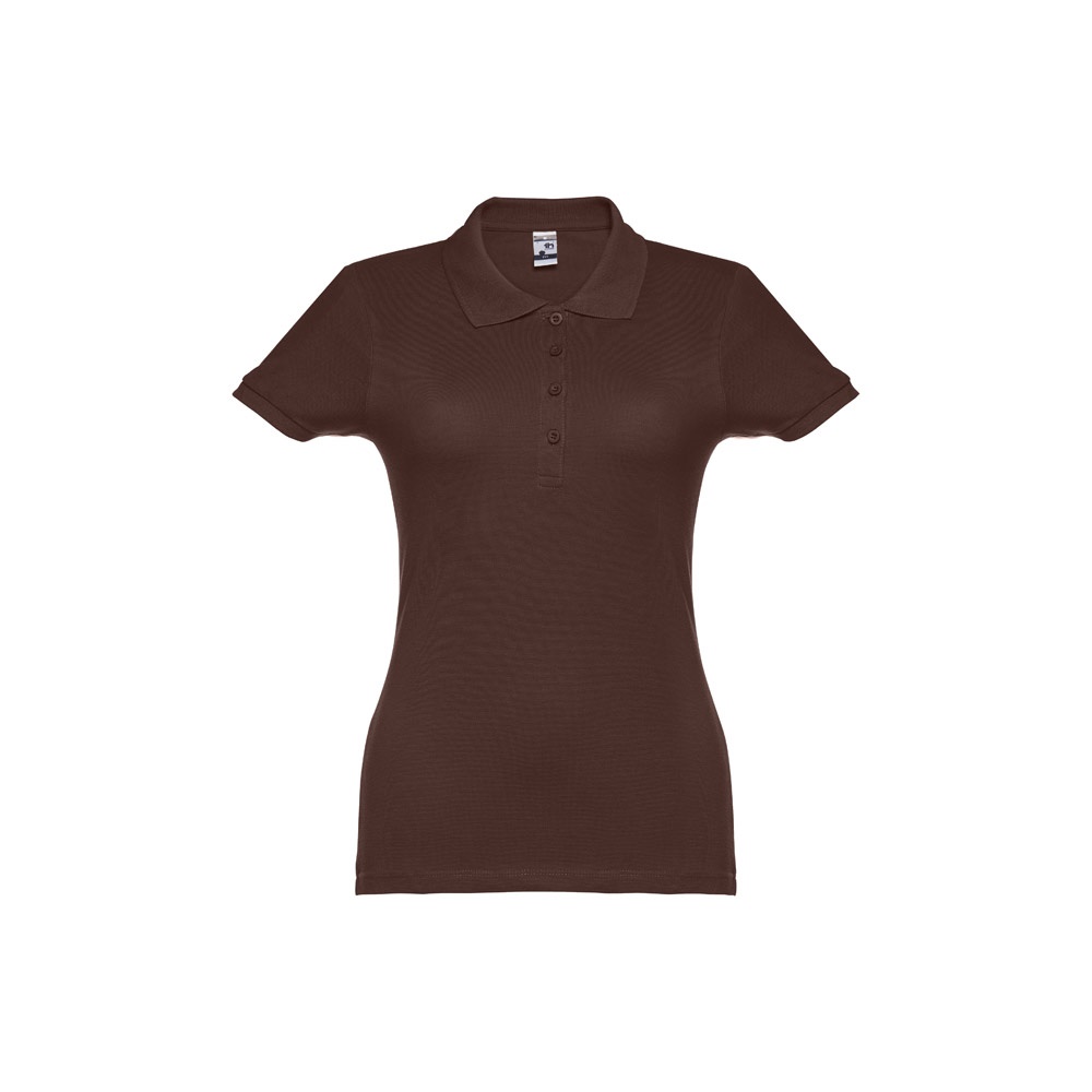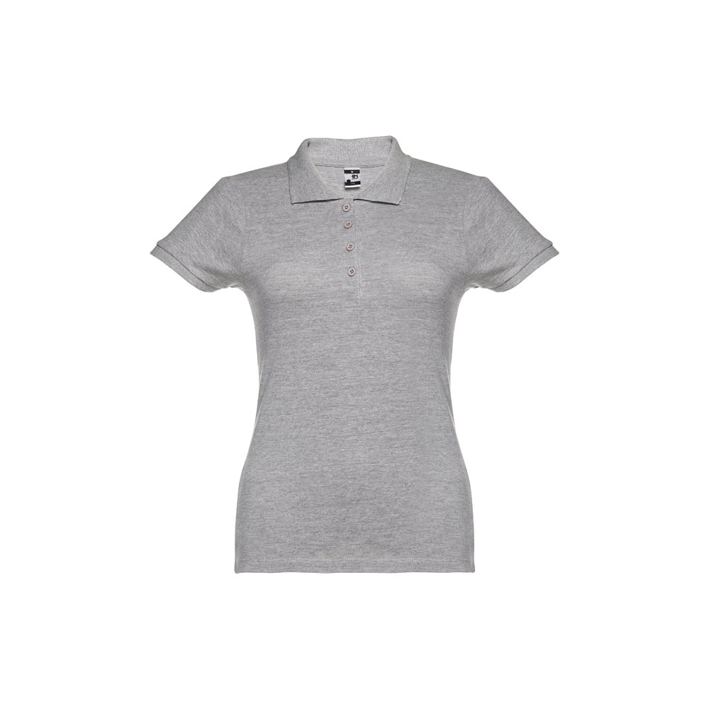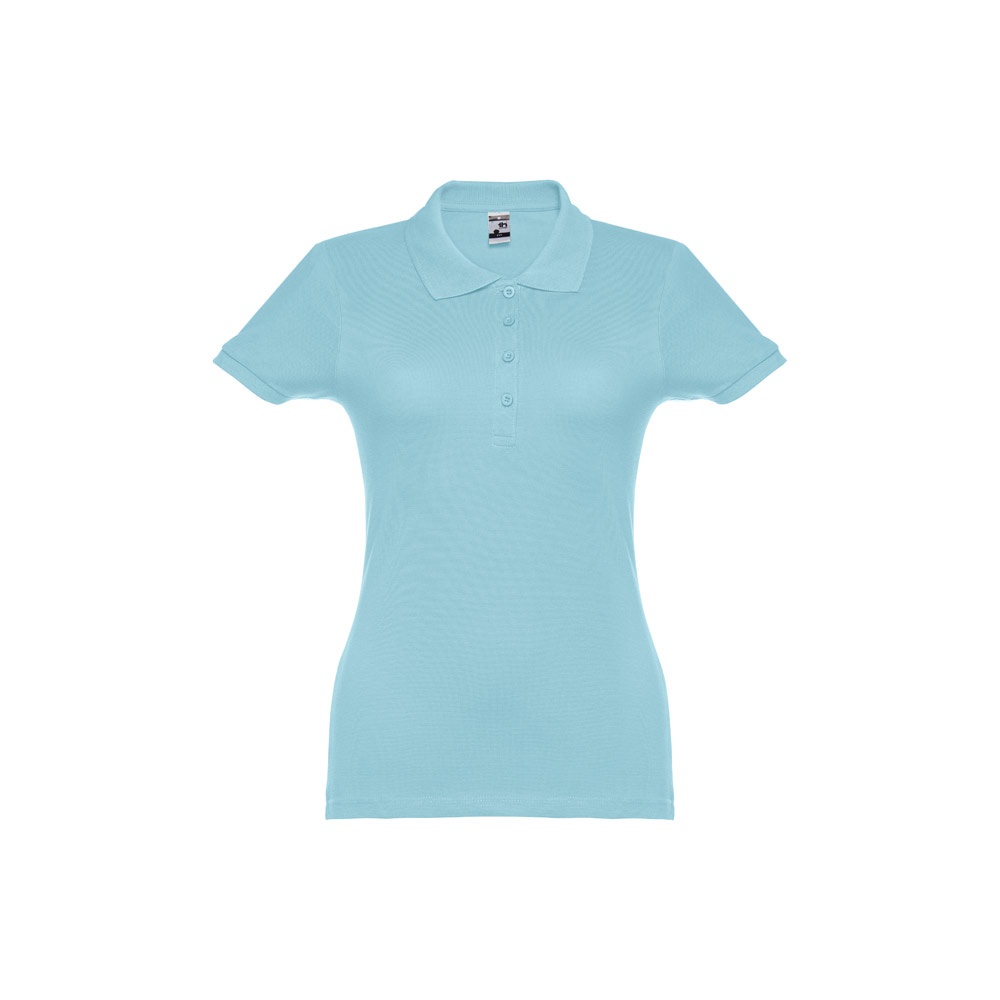 Damska koszulka polo z krótkim rękawem. 100% zgrzebna bawełna typu piqué (195 g/m²) (kolor 183: 85% bawełna/15% wiskoza). Kołnierzyk i mankiety ze ściągaczem, kołnierz wzmocniony tasiemką typu piqué. Z przodu obok kołnierzyka cztery dopasowane kolorystycznie guziki (dodatkowy guzik wszyty w szew wewnętrzny). Zszywana po bokach. Rozmiary: S, M, L, XL, XXL