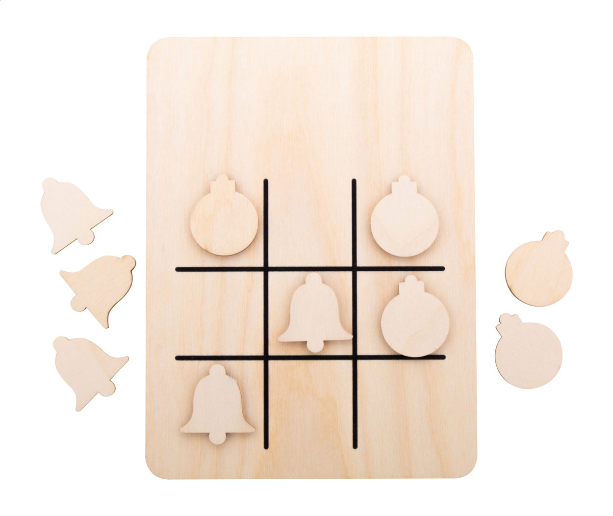 Świąteczna gra w kółko i krzyżyk ze sklejki brzozowej z 10 żetonami i planszą.