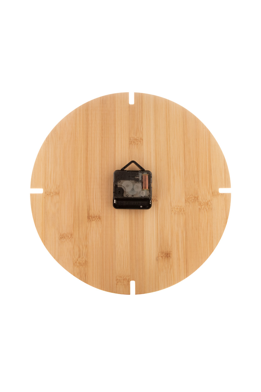 Okrągły bambusowy zegar ścienny. Działa z 1 baterią AA, bez baterii w zestawie.