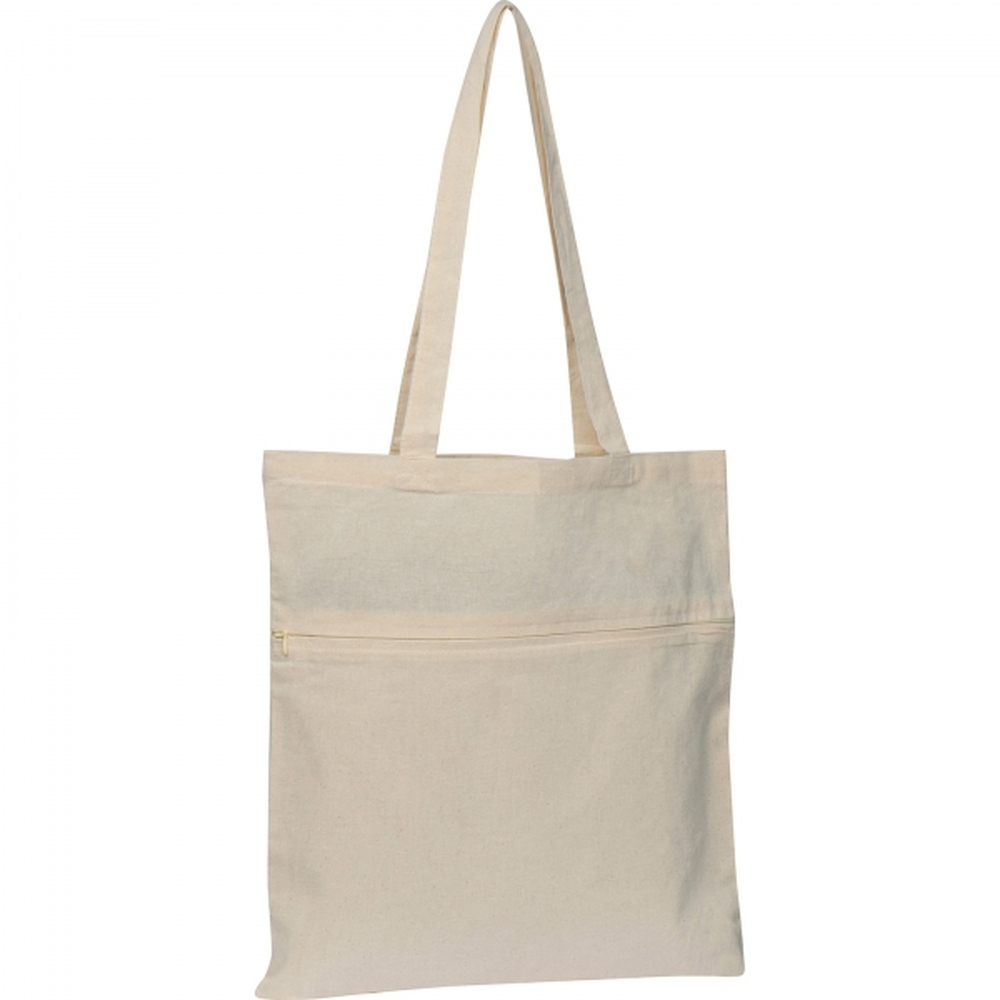 Torba bawełniana z długimi uszami i dodatkową przednią kieszenią zamykaną na zamek. Wykonana z przyjaznej środowisku, organicznej bawełny z certyfikatem Oeko-Tex STANDARD 100, o gramaturze 140g/m².