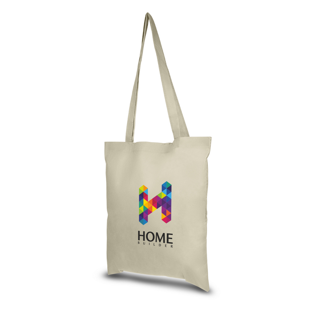 Torba na zakupy, posiada długie uchwyty (długość 70 cm, szerokość 2,5 cm) umożliwiające noszenie na ramieniu, możliwość nadrukowania dużego i widocznego z daleka logotypu, z materiału non-woven o gramaturze 80 g/m2