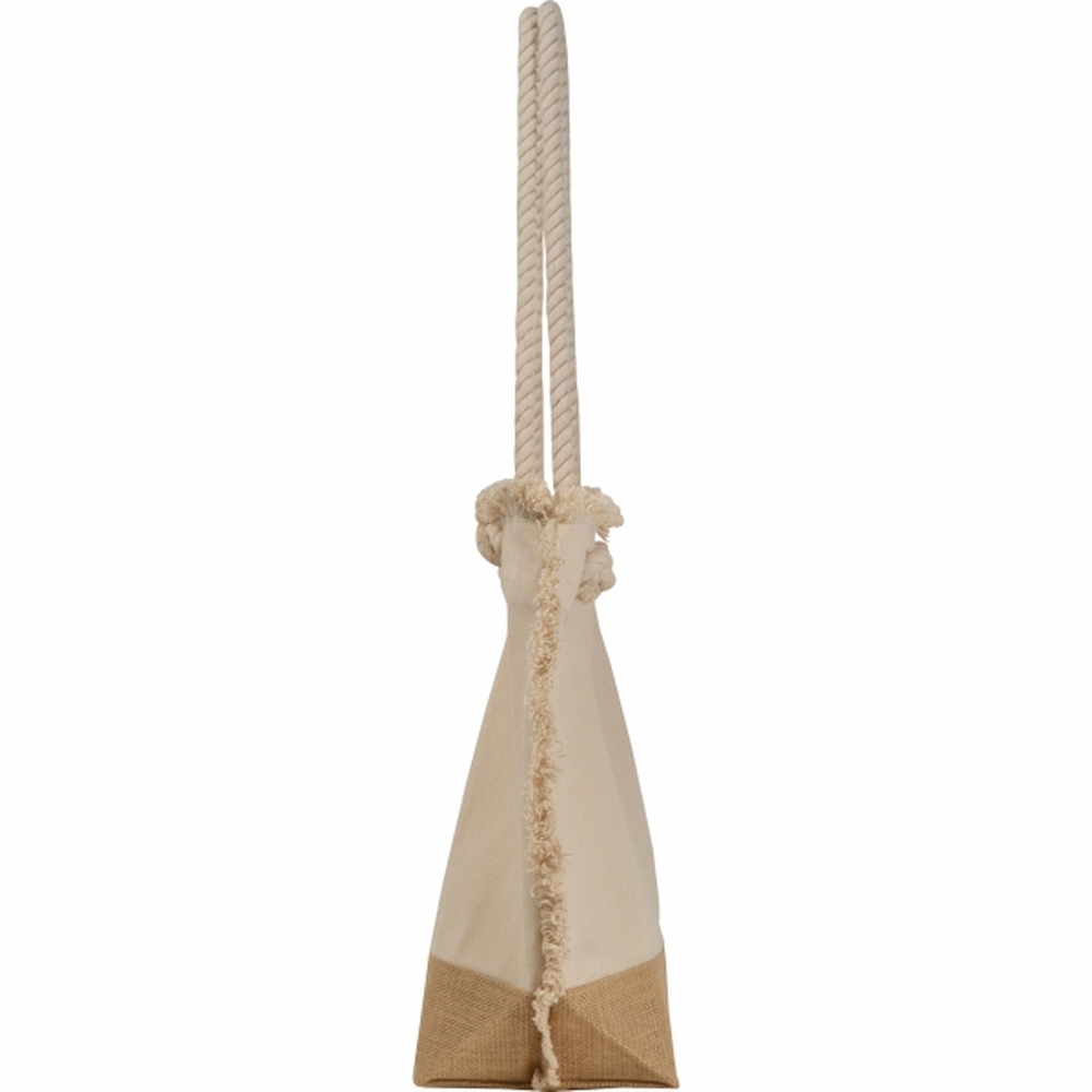 Bawełniana torba plażowa z certyfikatem Oeko-Tex , z jutowym dnem oraz uchwytami z grubego sznura.