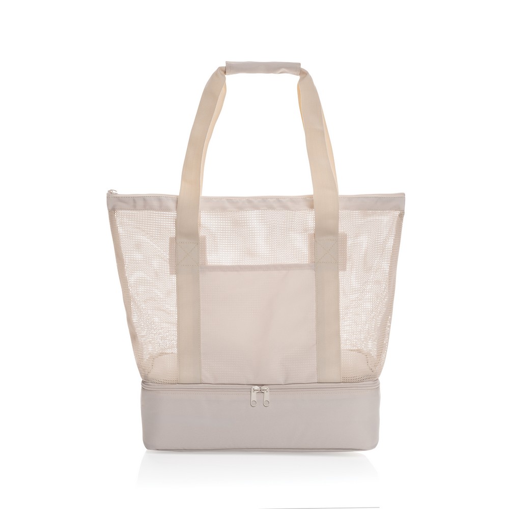 Torba plażowa, na zakupy, wykonana z poliestru RPET, podszewka wykonana z PEVA, z dolną przegrodą termoizolacyjną i siateczkową przegrodą główną na zamek błyskawiczny, przednia kieszeń, uchwyty z paskiem na rzep, posiada znacznik AWARE™, który gwarantuje, że wykorzystane materiały pochodzą z recyklingu, 2% wpływów z każdego sprzedanego produktu z kolekcji AWARE™ jest przekazywane na rzecz Water.org