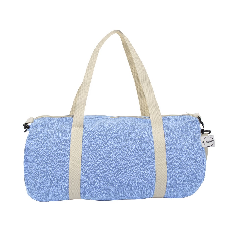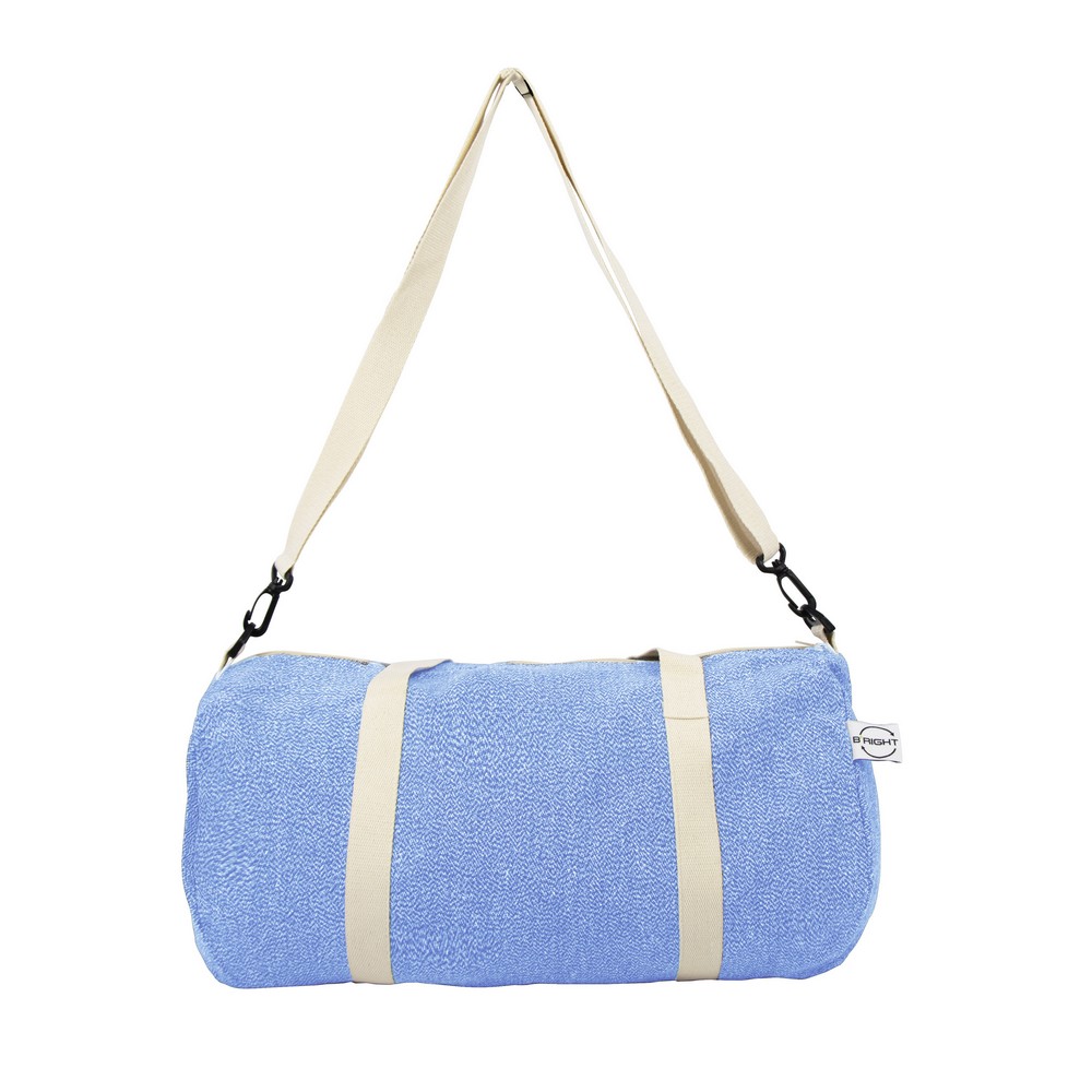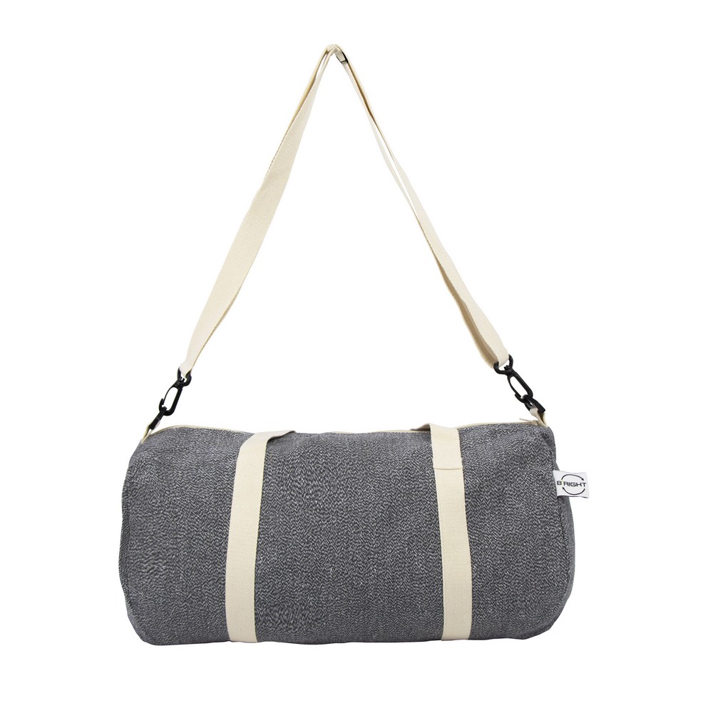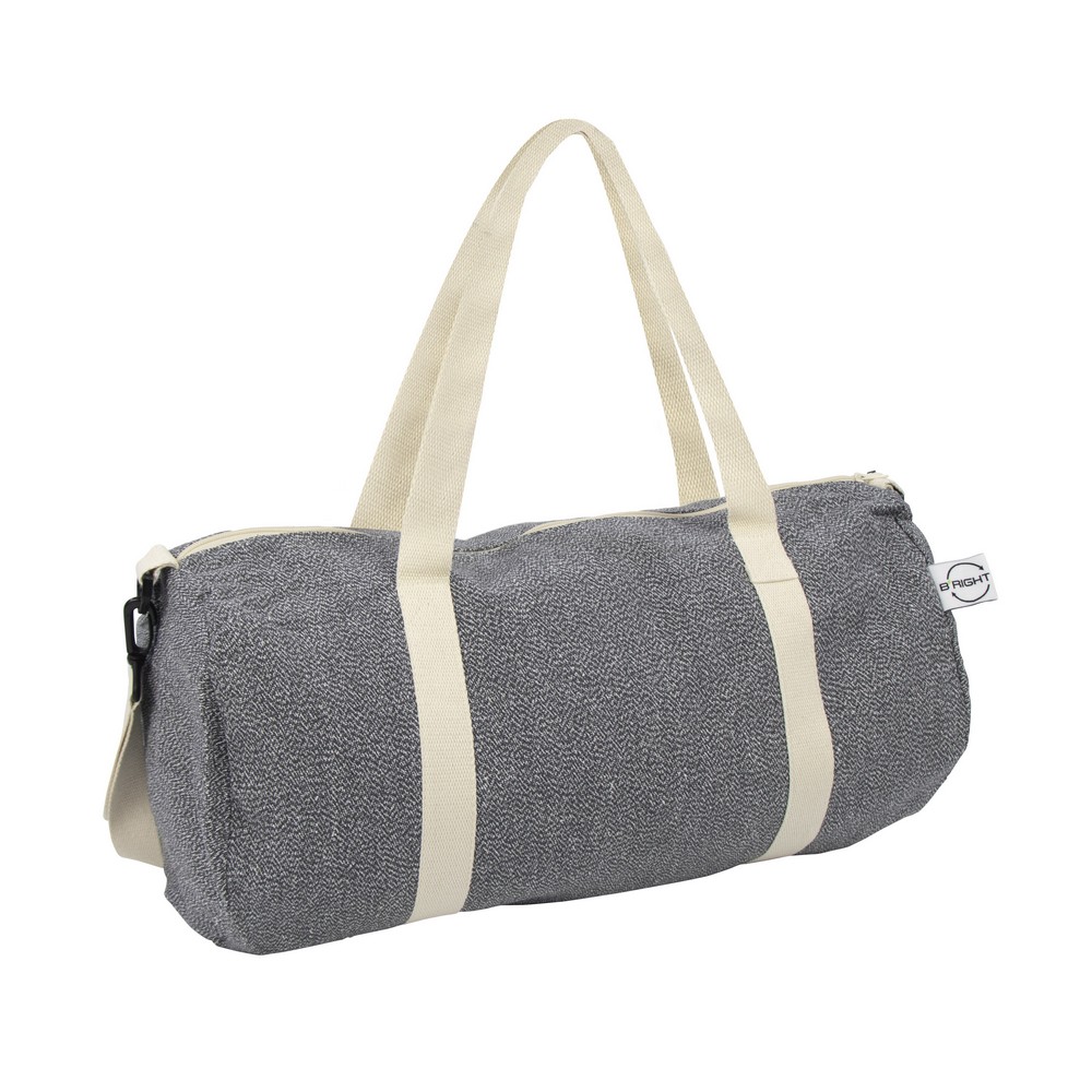 Torba sportowa, podróżna B’RIGHT, wykonana z bawełny z recyklingu i poliestru z recyklingu, zgodna z certyfikatem GRS (Global RecycIed Standard), duża przegroda główna na zamek błyskawiczny, uchwyty i regulowany pasek na ramię