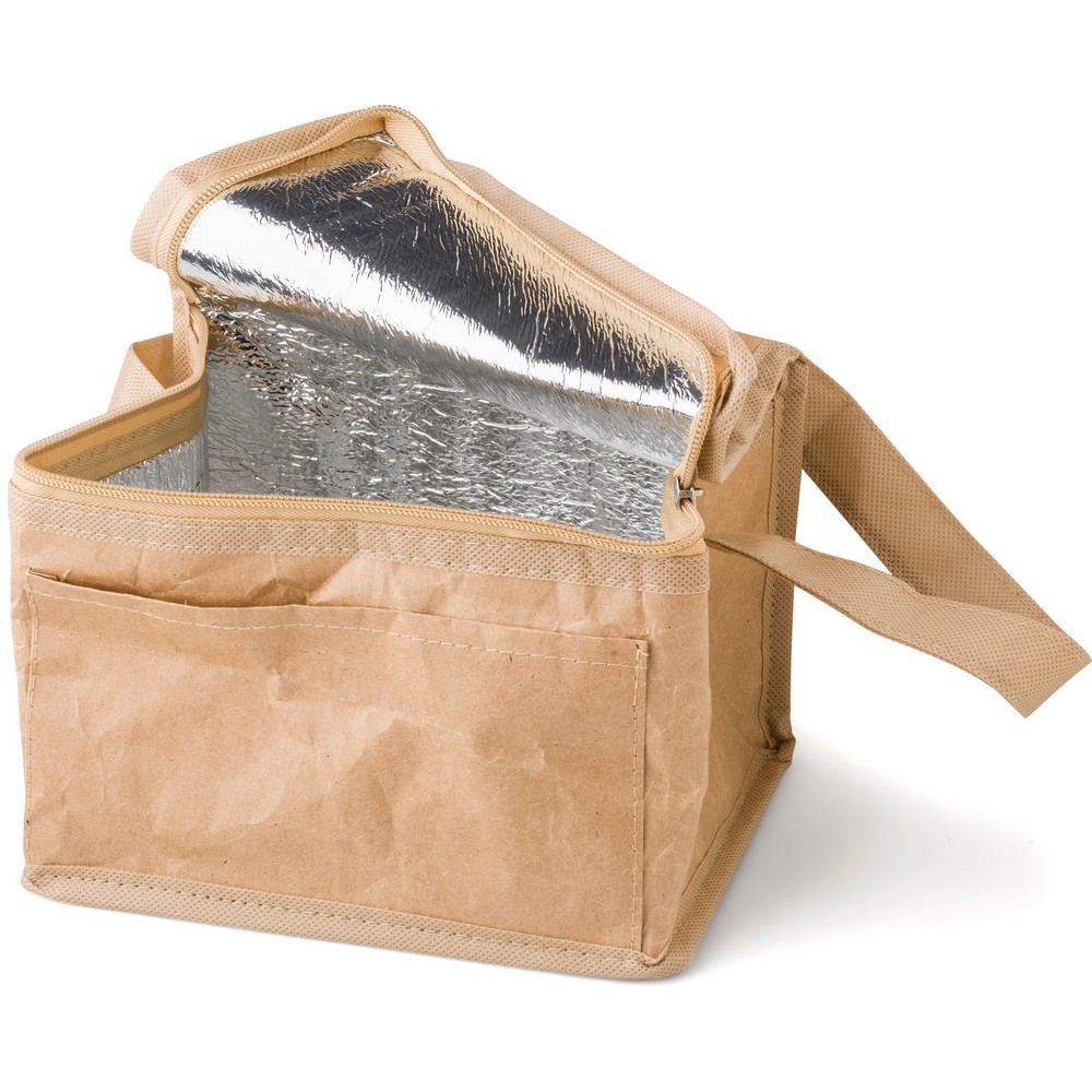 Torba termoizolacyjna, papierowa, przegroda główna zapinana na zamek błyskawiczny, przednia kieszeń, uchwyt
