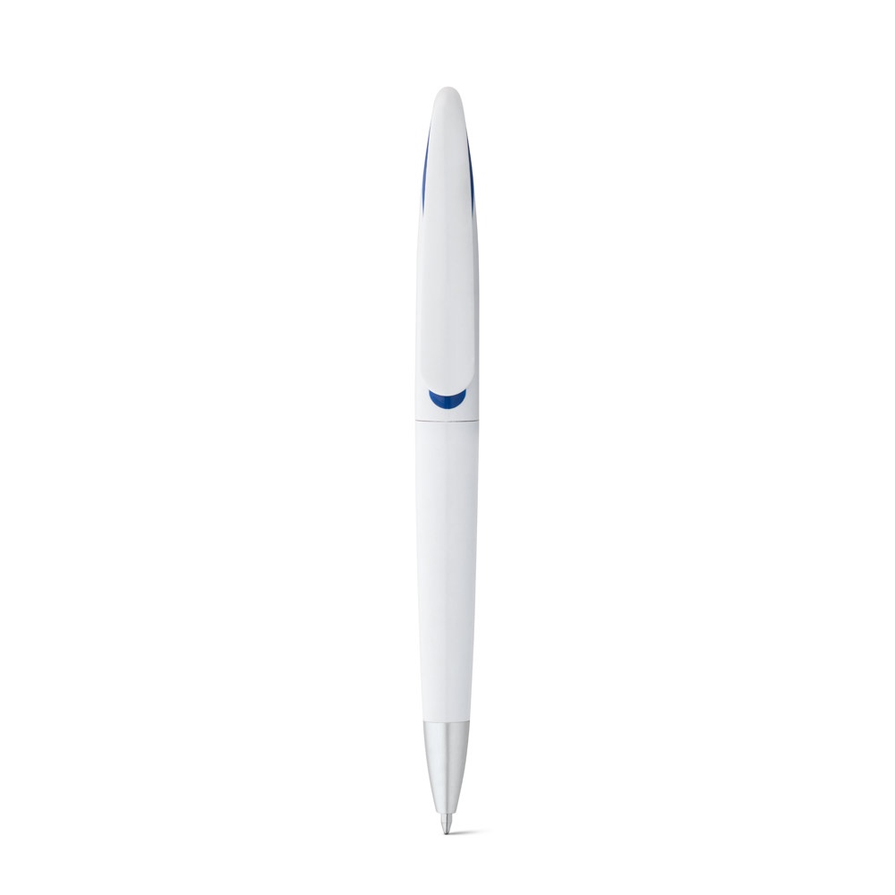 Długopis wykonany z ABS z mechanizmem obrotowym i klipsem. Niebieski tusz