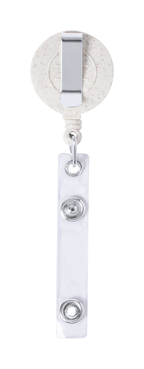 Ekologiczny ski pass ze słomy pszenicznej i bambusa, zapinany na zatrzask, z wysuwaną linką i metalowym klipsem.