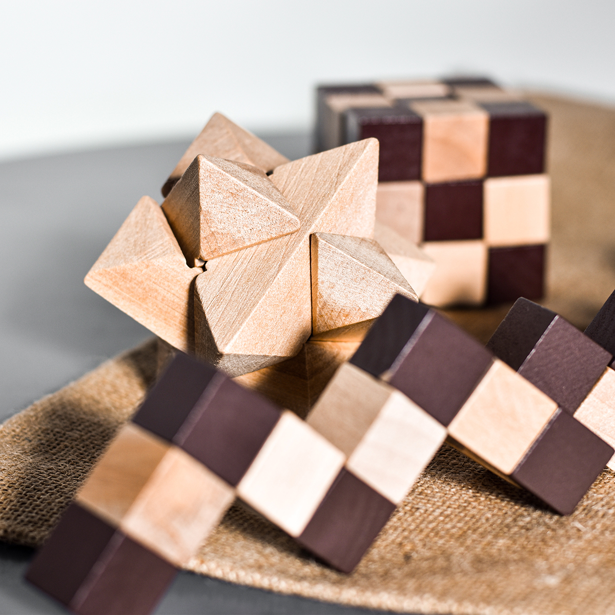 Wykonana z drewna układanka logiczna. Relaks i test dla naszego umysłu. Pakowana w płócienny woreczek (170 x 145 mm).