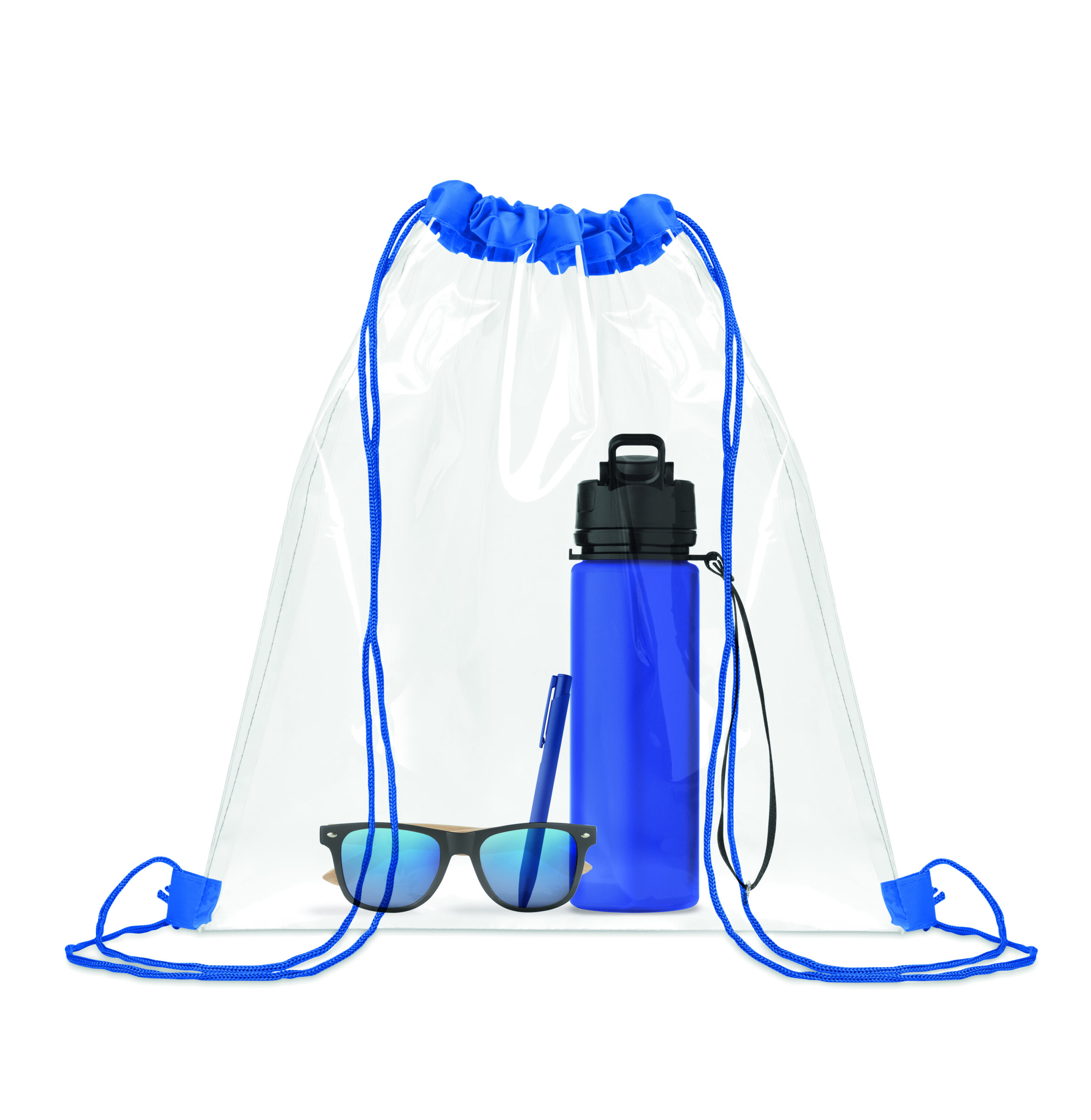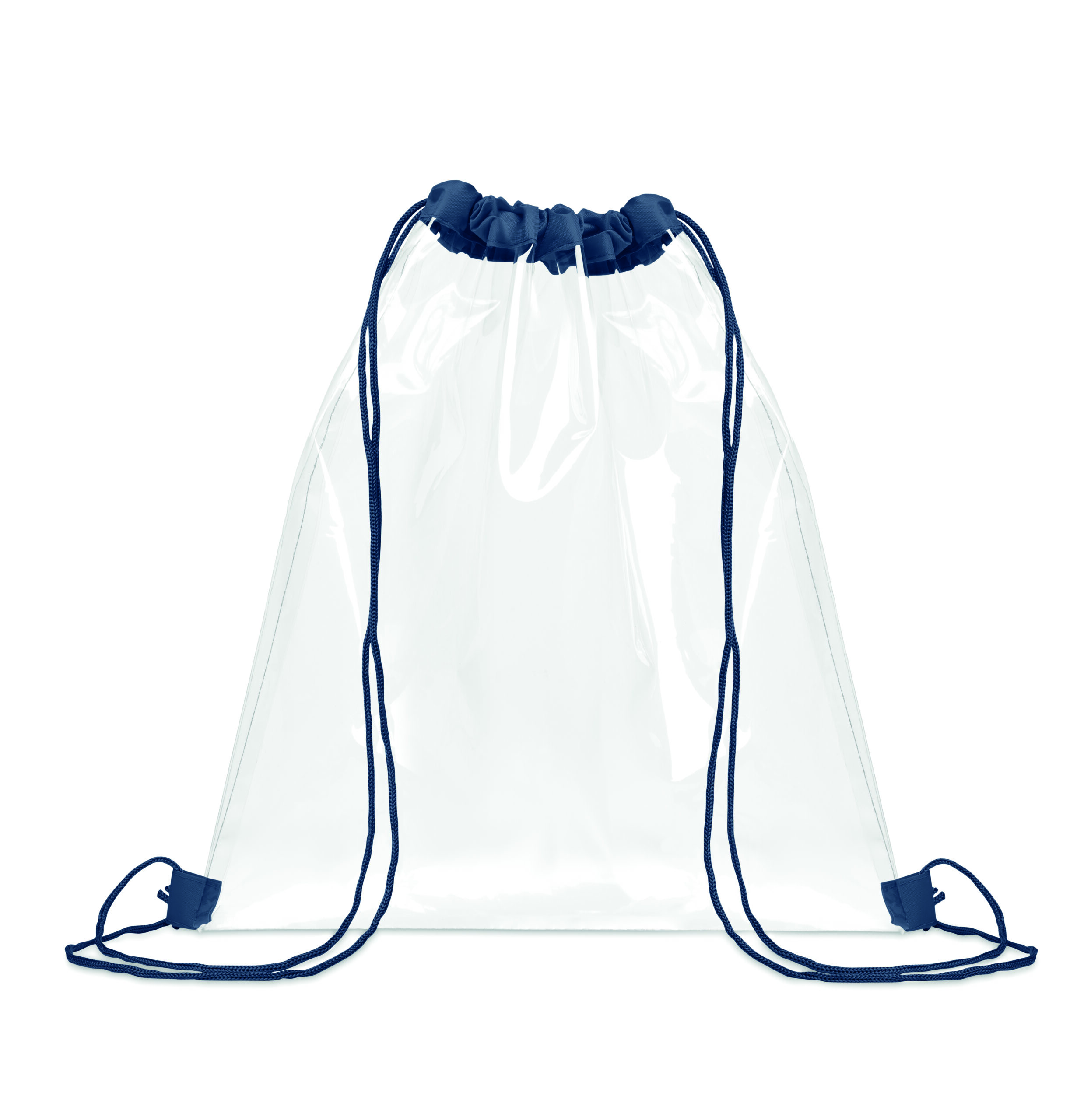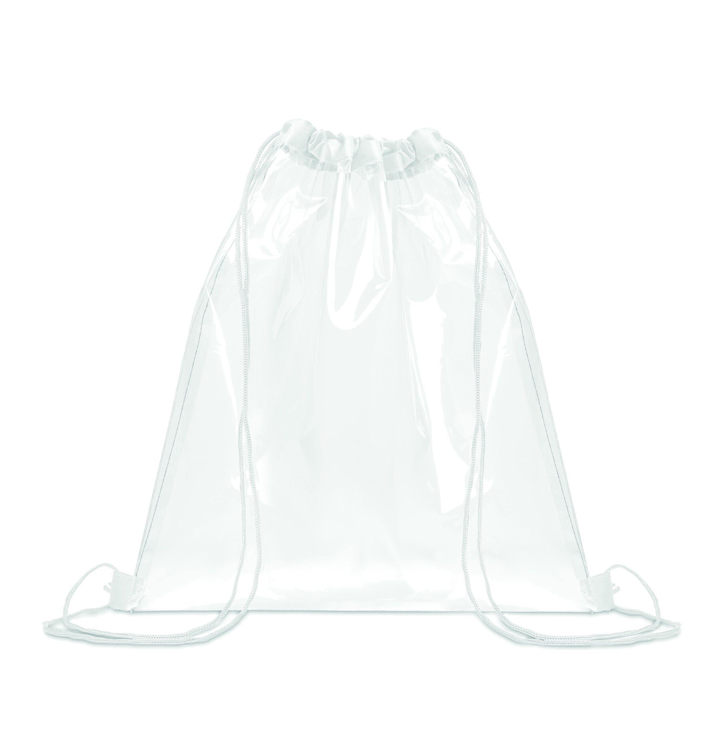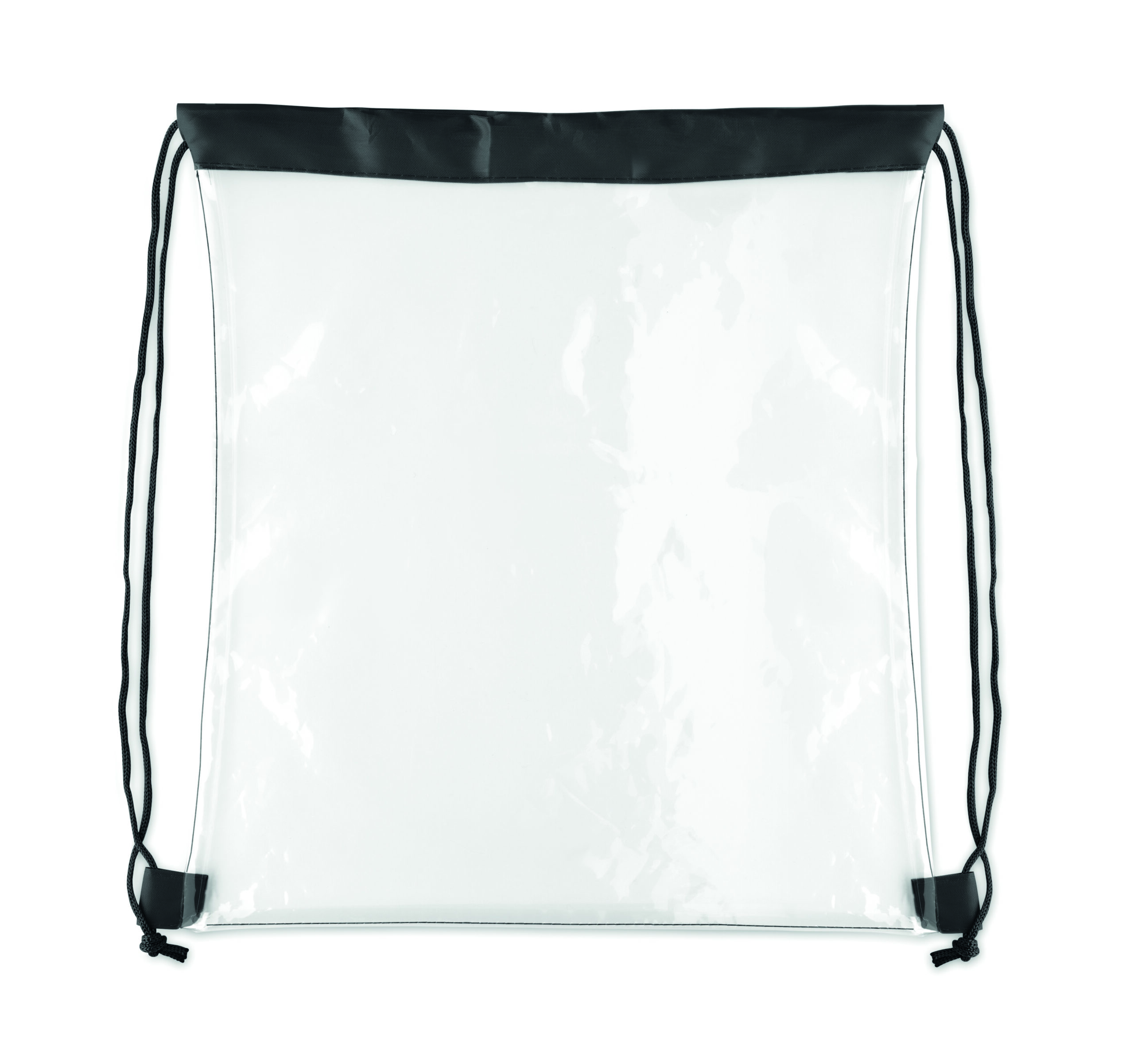Przezroczysty worek ze sznurkiem z EVA i PVC. Sznurki poliestrowe.