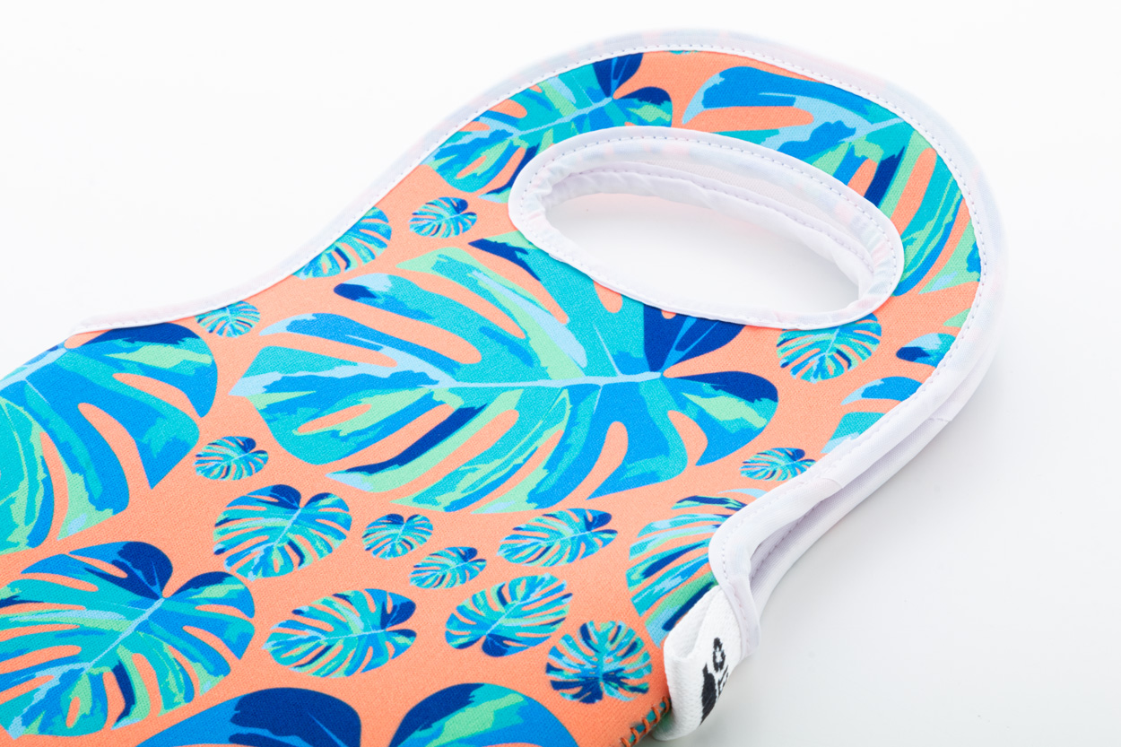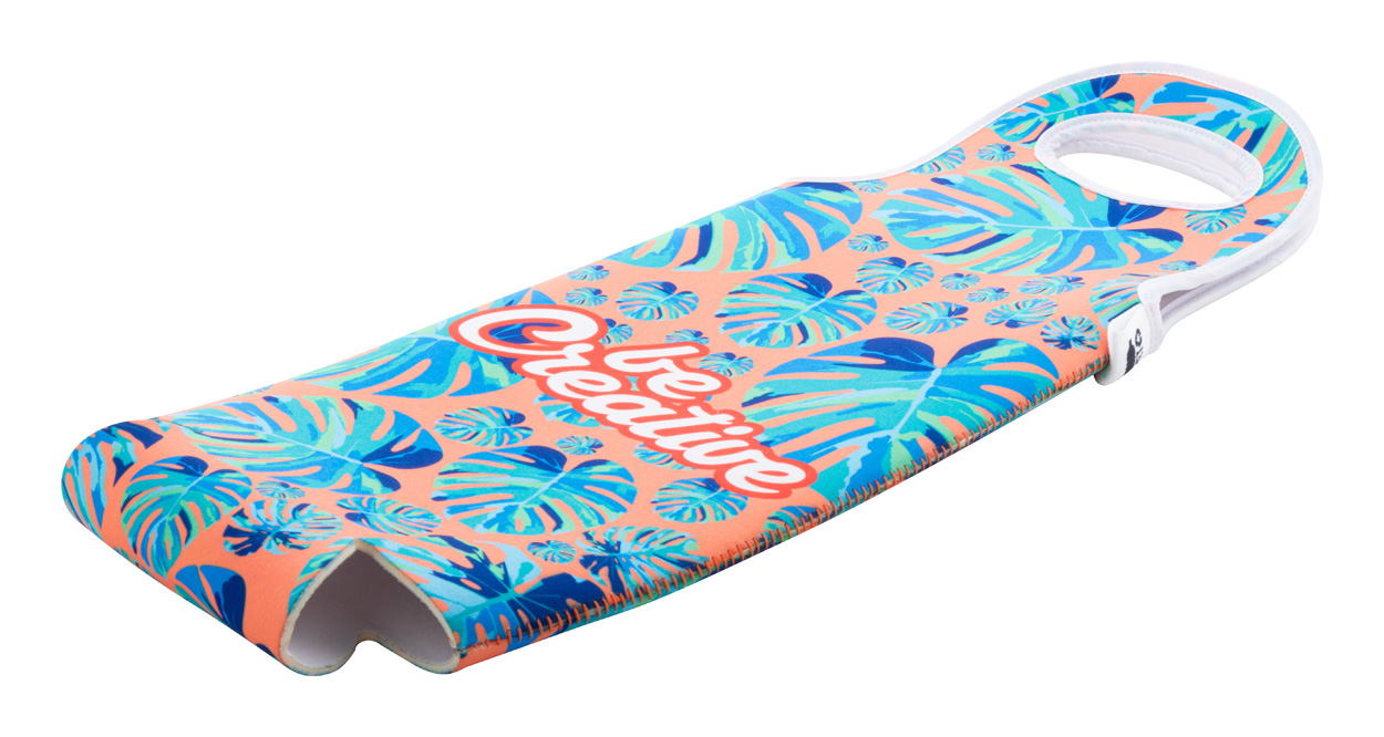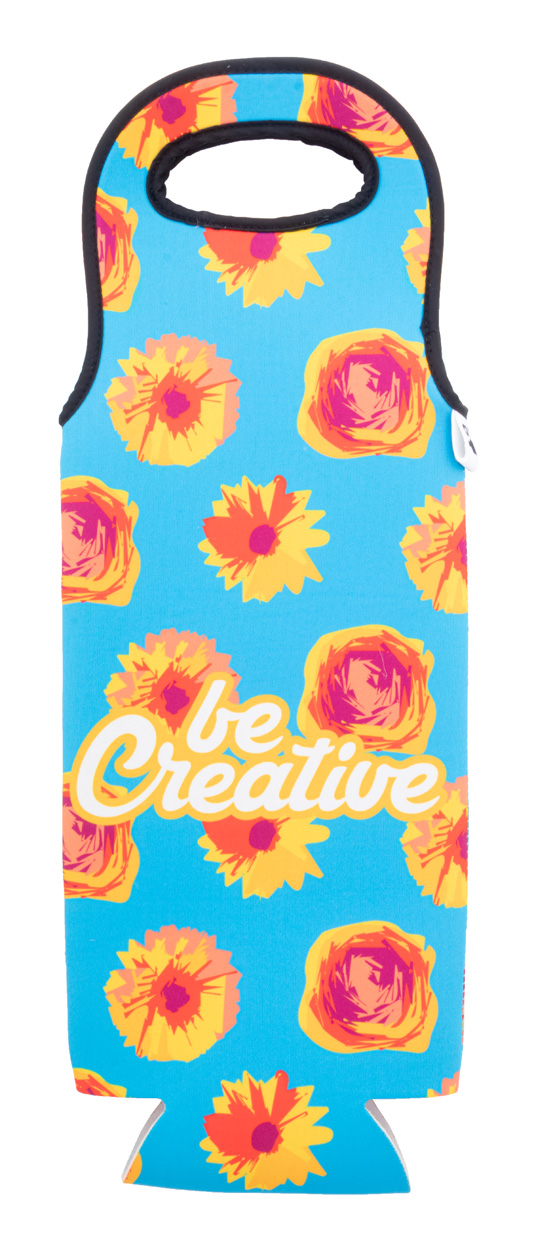 Personalizowana, neoprenowa torba na butelkę wina RPET z uchwytami. Z nadrukowaną grafiką sublimacyjną na całej powierzchni. Min. ilość: 25 szt.