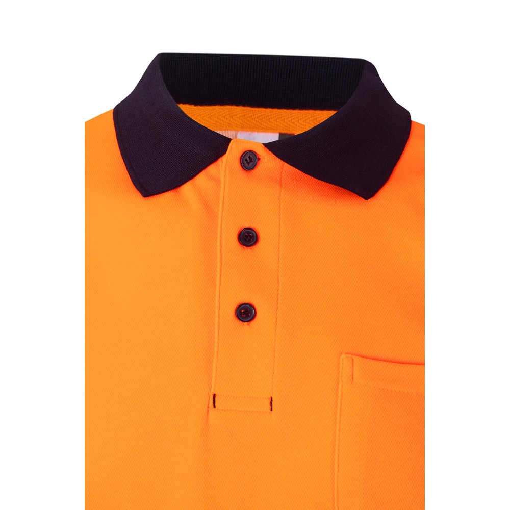 Dwukolorowa koszulka polo piqué (150g/m²) z krótkim rękawem, z bawełny (55%) i poliestru (45%). Guziki, ściągaczowy kołnierzyk i dół w kontrastowym kolorze. Odblaskowe paski na tułowiu. Zawiera kieszeń na piersi . Produkt zgodny z rozporządzeniem UE 2016/425, certyfikowany przez EN20471 i klasę Nº 1