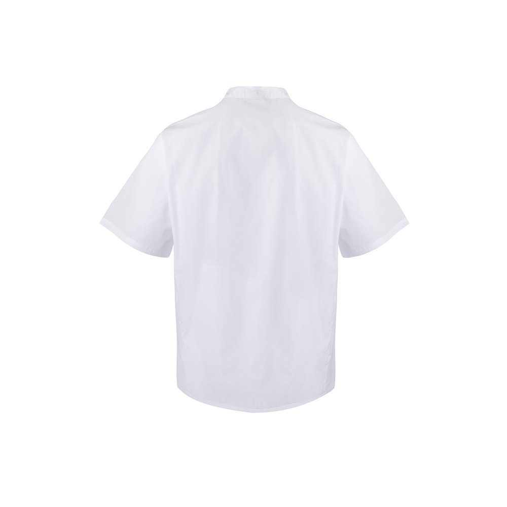 Kurtka kuchenna z krótkim rękawem, popelinowa (110g/m²), wykonana z bawełny (35%) i poliestru (65%). Z podwójnym zapięciem na guziki i 1 kieszenią na piersi