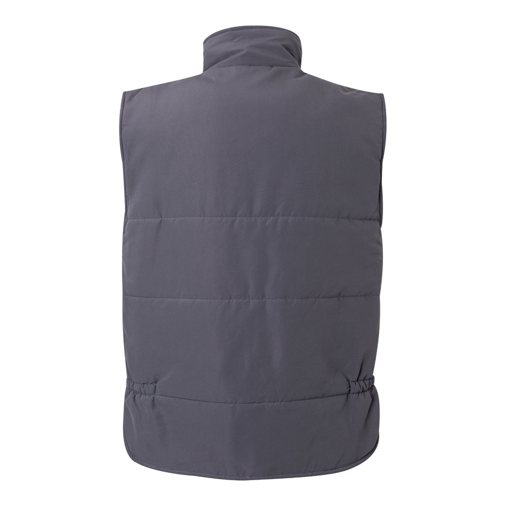 Kamizelka pikowana z wieloma kieszeniami (220 g/m²), poliester (100%). Zapinana na zamek błyskawiczny ukryty w plisie guzikowej. Elastyczny pas z boku i wiatrołap w dole pachowym. Z siedmioma kieszeniami (1 kieszeń na piersi, 2 kieszenie dolne, 2 kieszenie boczne i 1 kieszeń mieszkowa na piersi)