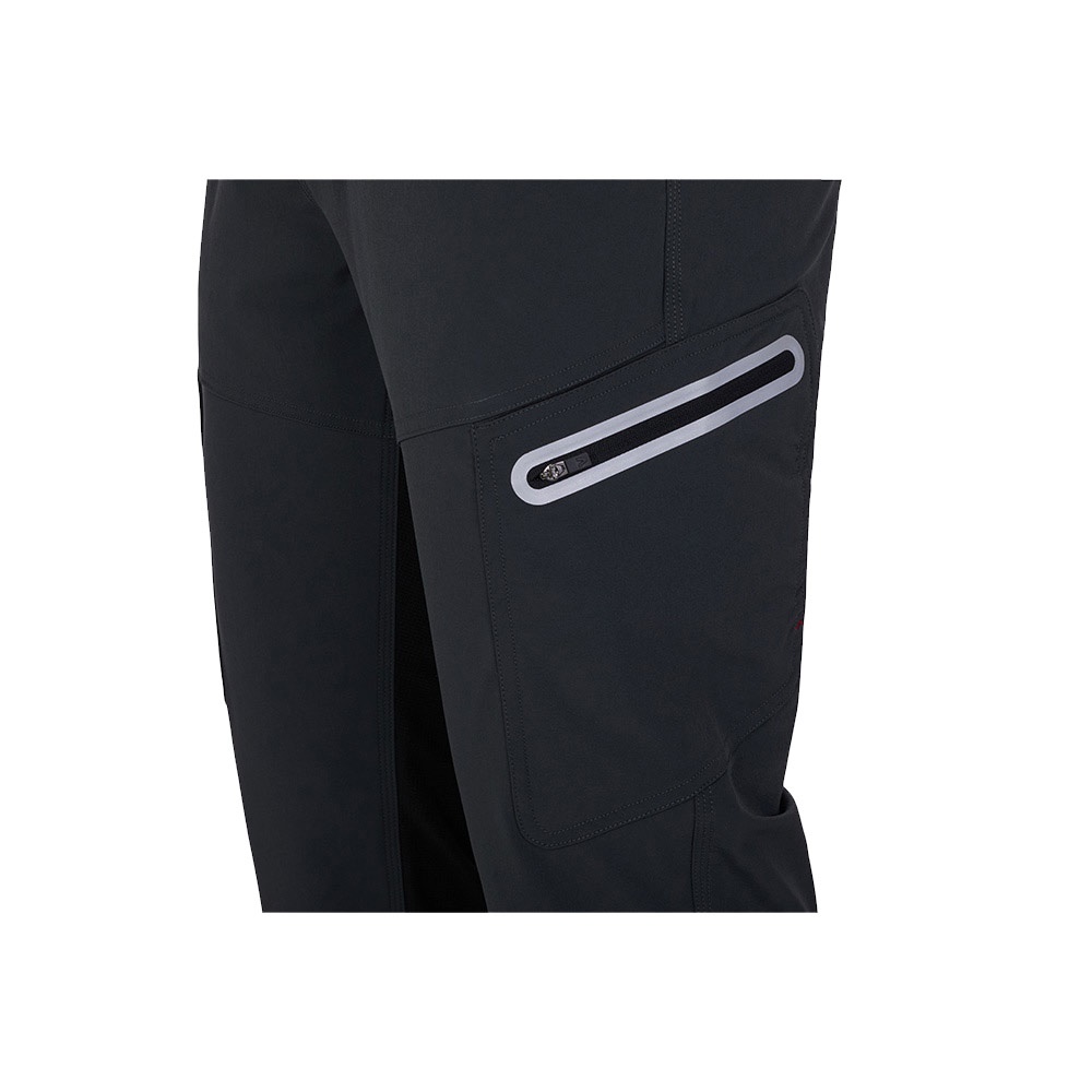 Spodnie (230 g/m²), wykonane z nylonu pochodzącego z recyklingu (91%) i spandeksu (9%). Spodnie są elastyczne, mają wąski krój i odblaskowe detale. Spodnie mają pięć kieszeni (2 kieszenie francuskie, 1 kieszeń z klapką na lewej nogawce, 1 kieszeń z klapką na prawej nogawce i 1 wewnętrzną kieszeń z tyłu)