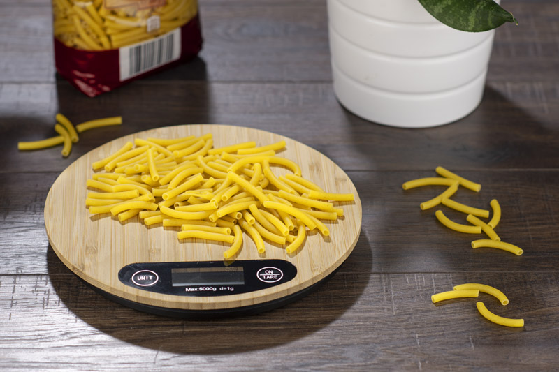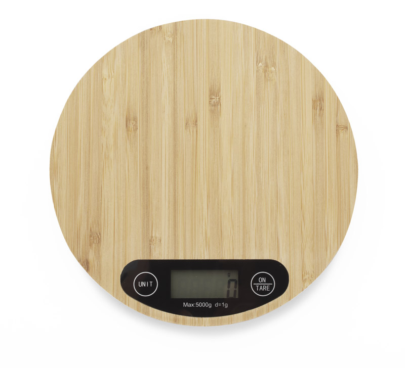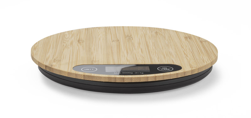 Elektroniczna waga kuchenna CIRCA wykończona naturalnym bambusem.