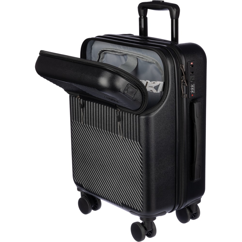 Walizka, torba na kółkach, z przednią kieszenią na laptopa zapinaną na zamek, sprawdzi się podczas podróży samolotem, pociągiem lub samochodem, 8 kółek, wygodny trzypoziomowy system regulacji uchwytu, posiada zamek numeryczny chroniący przed kradzieżą, produkt wykonany z ABS