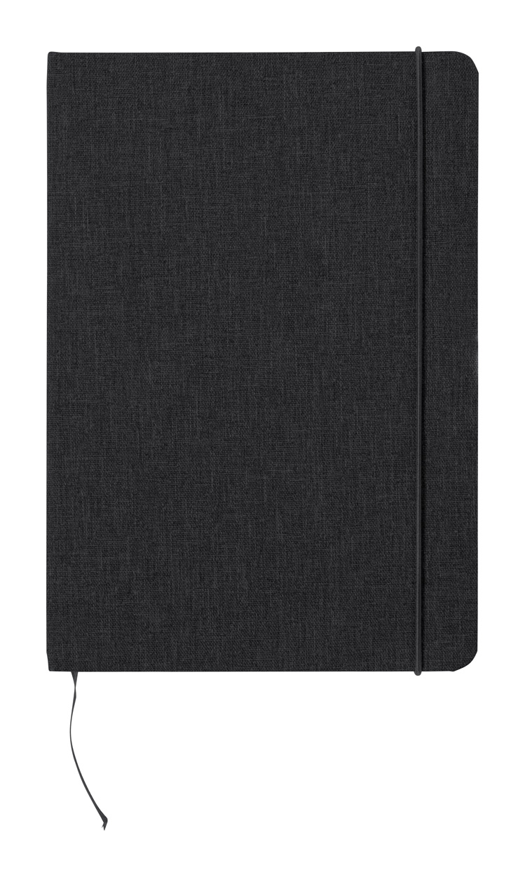 Notes w okładce z poliestru RPET, ze 100 gładkimi kartkami. Z dopasowaną kolorystycznie gumką, zakładką i uchwytem na długopis. Rozmiar A5.