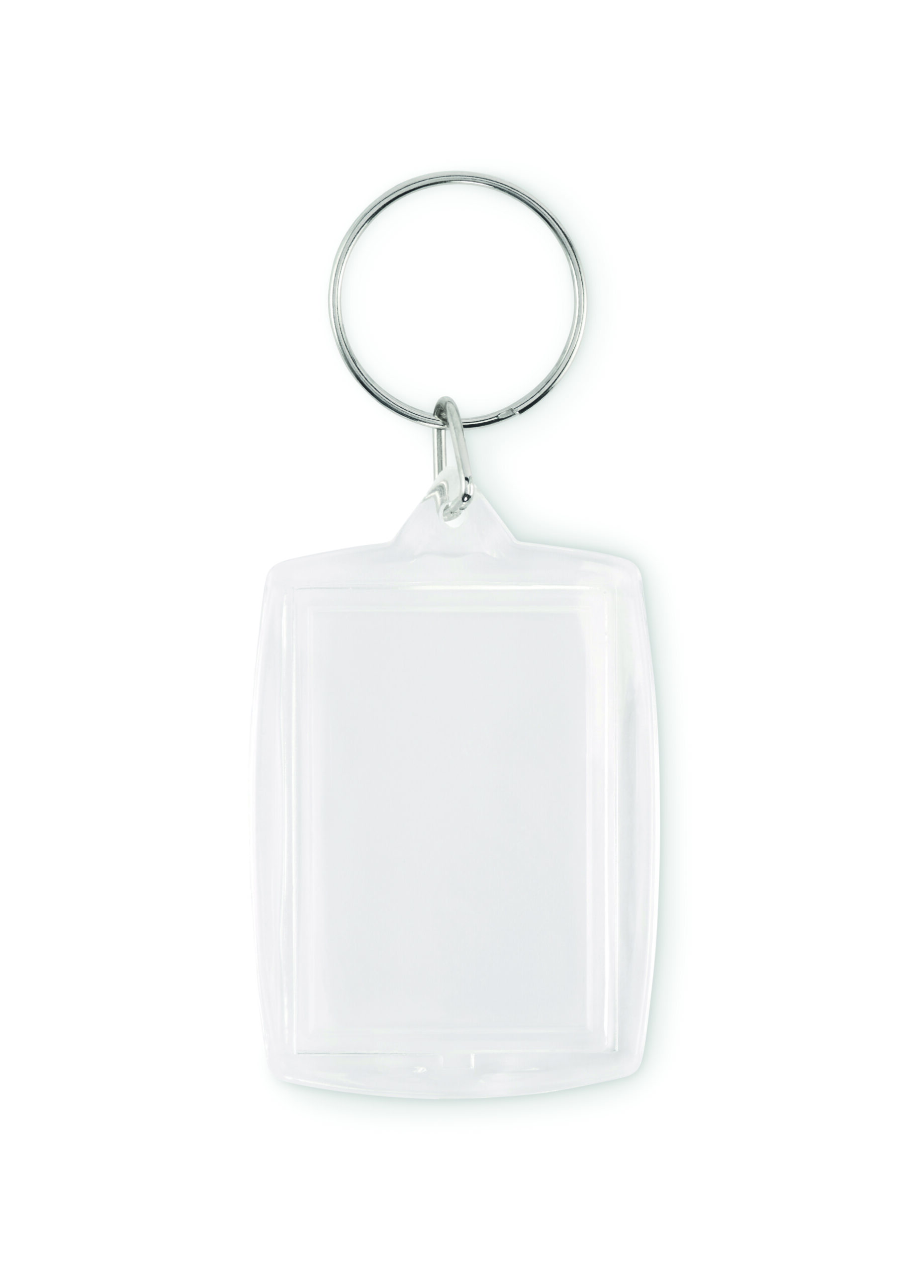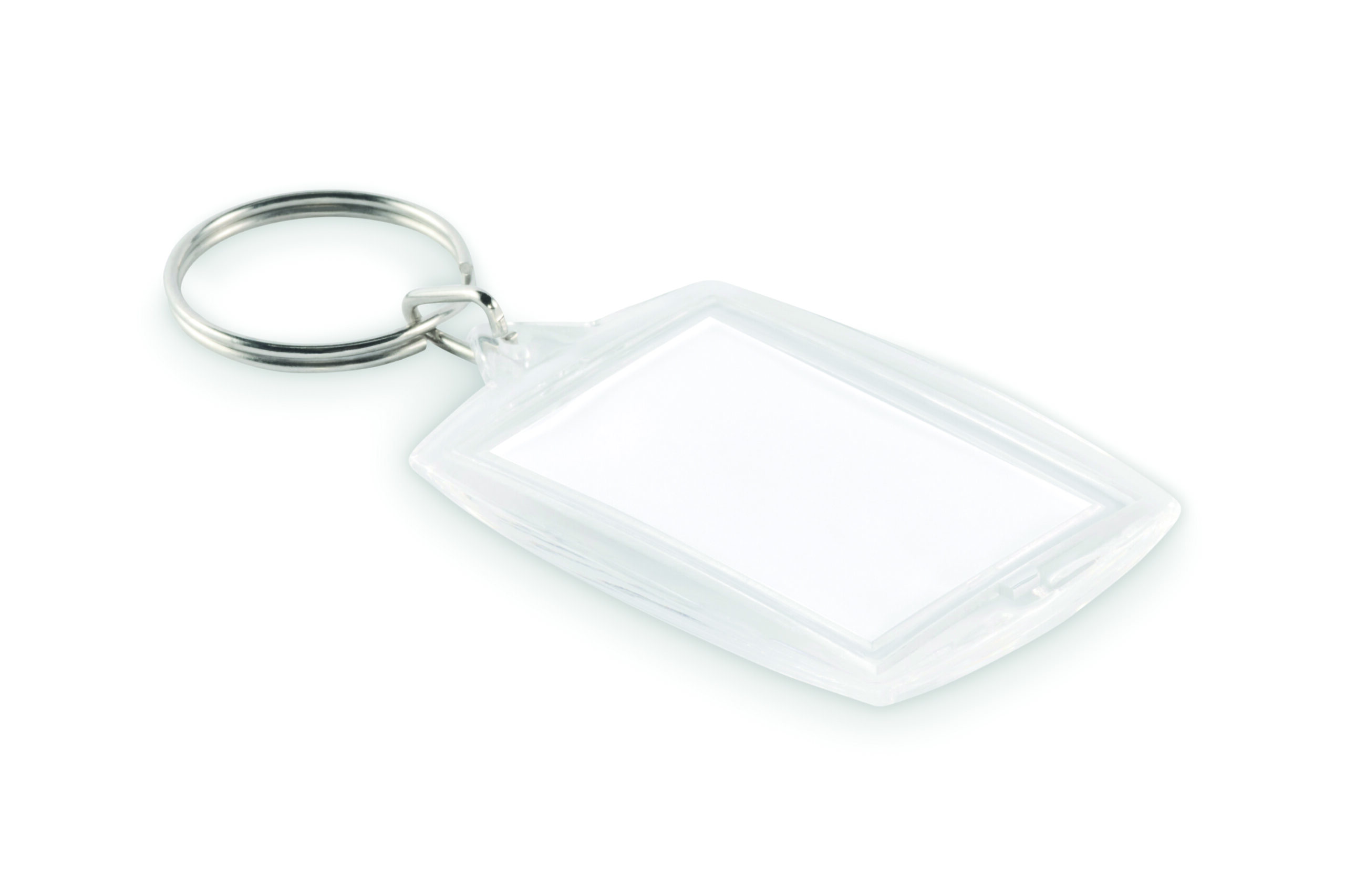 Klasyczny akrylowy brelok do kluczy z pełnokolorową papierową wkładką. Rozmiar wewnętrznego zdjęcia: 4,1 x 2,7 cm