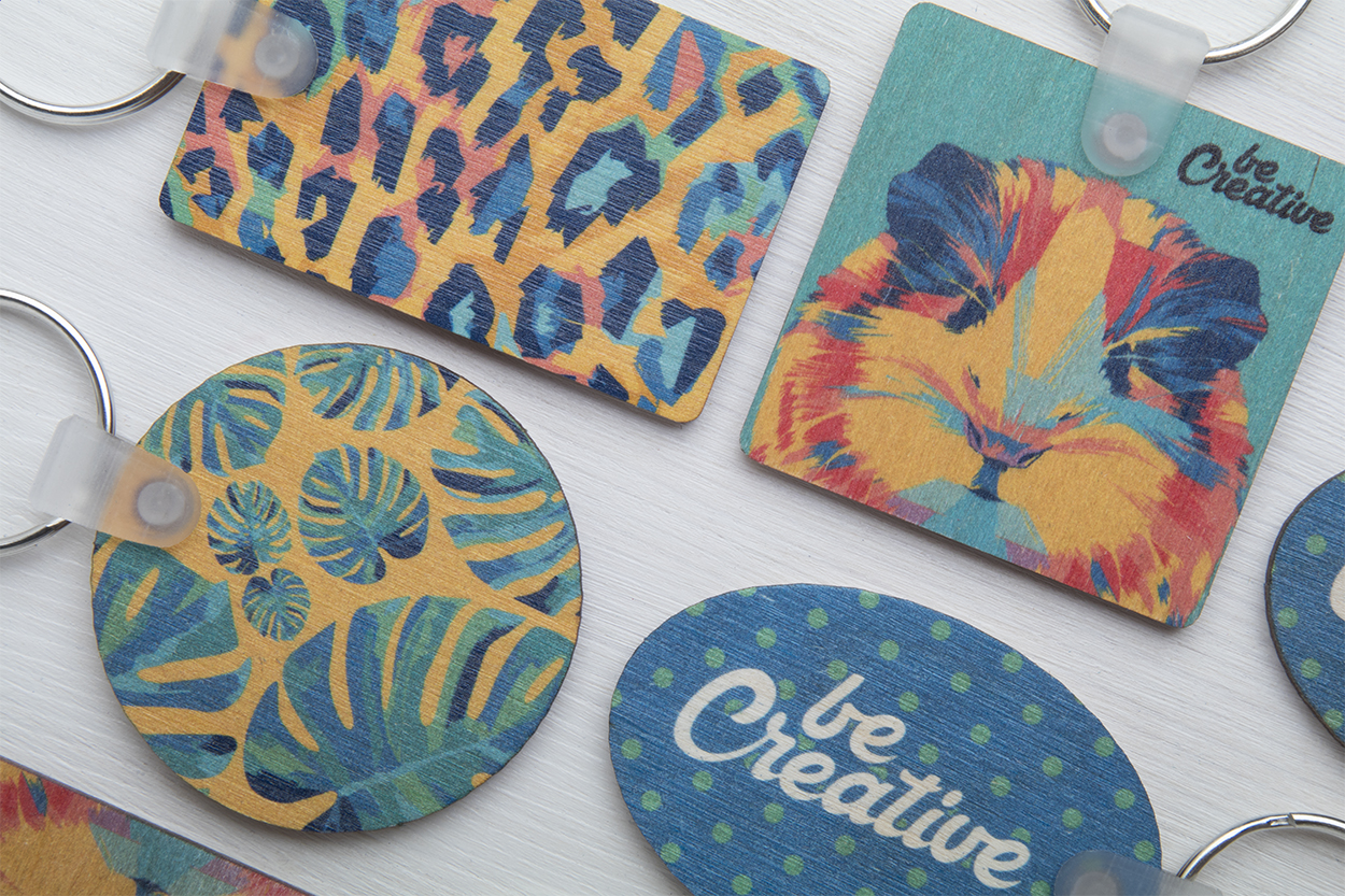 Prostokątna, laminowany brelok z drewna brzozowego z nadrukiem full color. Cena obejmuje druk UV LED po jednej stronie. Minimalne zamówienie: 200 szt.