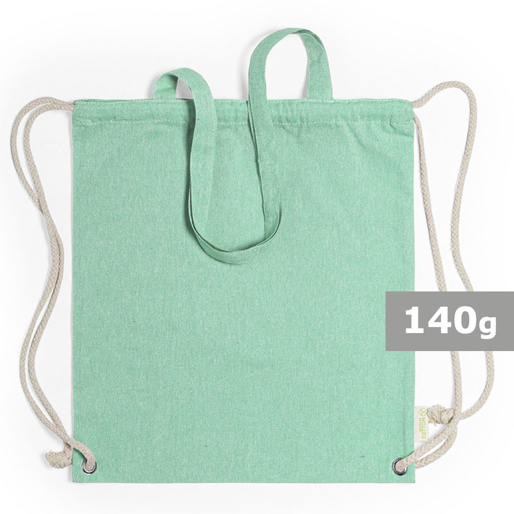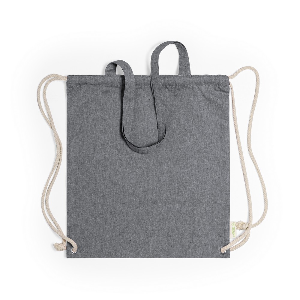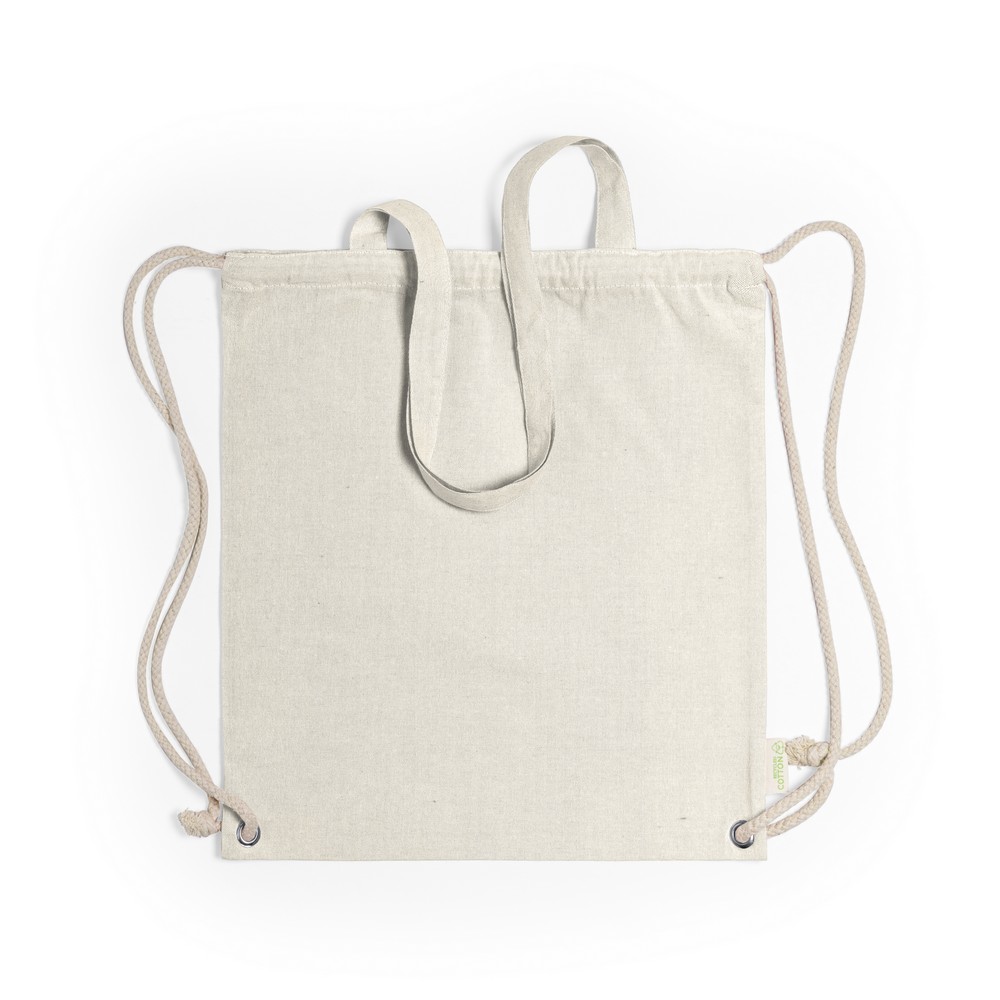 Worek ze sznurkiem i torba na zakupy z długimi uchwytami 2 w 1, wykonany z bawełny z recyklingu