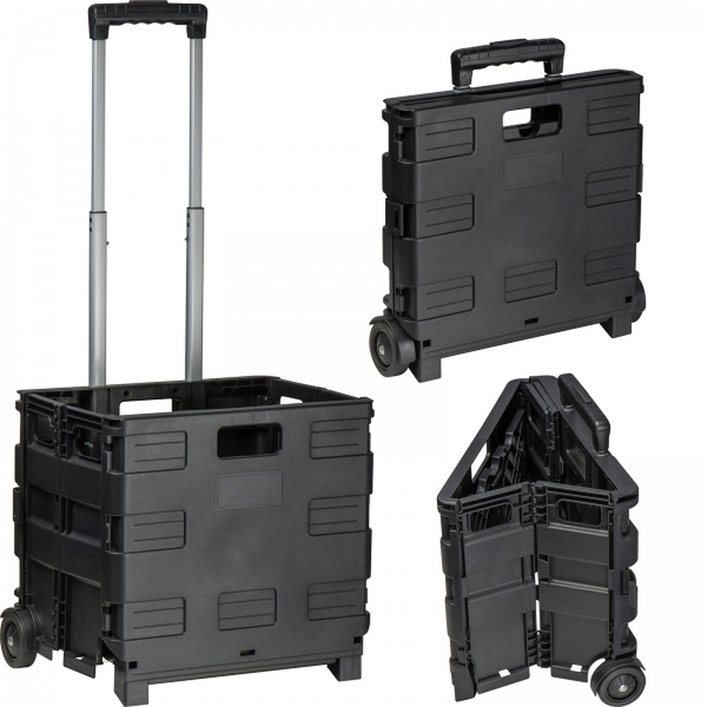 Praktyczny, składany wózek na zakupy na kółkach z rączką teleskopową. Udźwig do 25 kg.