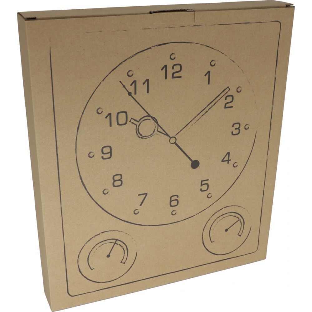 Zegar ścienny z higrometrem i termometrem, wykonany z plastiku i akrylu. Produkt nie zawiera baterii.