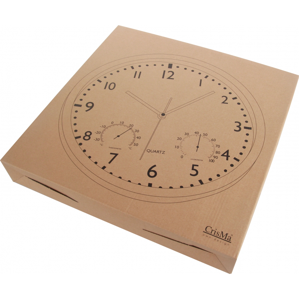 Elegancki zegar w wytrzymałej obudowie. Kontrastująca tarcza i duże cyfry. Dodatkowy wskaźnik temperatury i wilgotności powietrza. Brak baterii w zestawie.