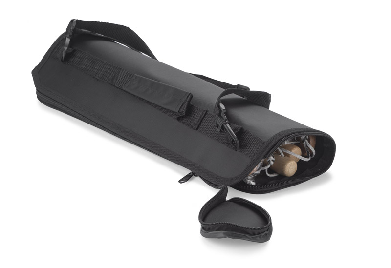 Zestaw do grilla RIVA w poliestrowym etui zawiera 10 elementów z drewnianymi rączkami: 2 szpikulce do szaszłyków, szczypce, łopatkę, widelec oraz 4 uchwyty do kolb kukurydzy.