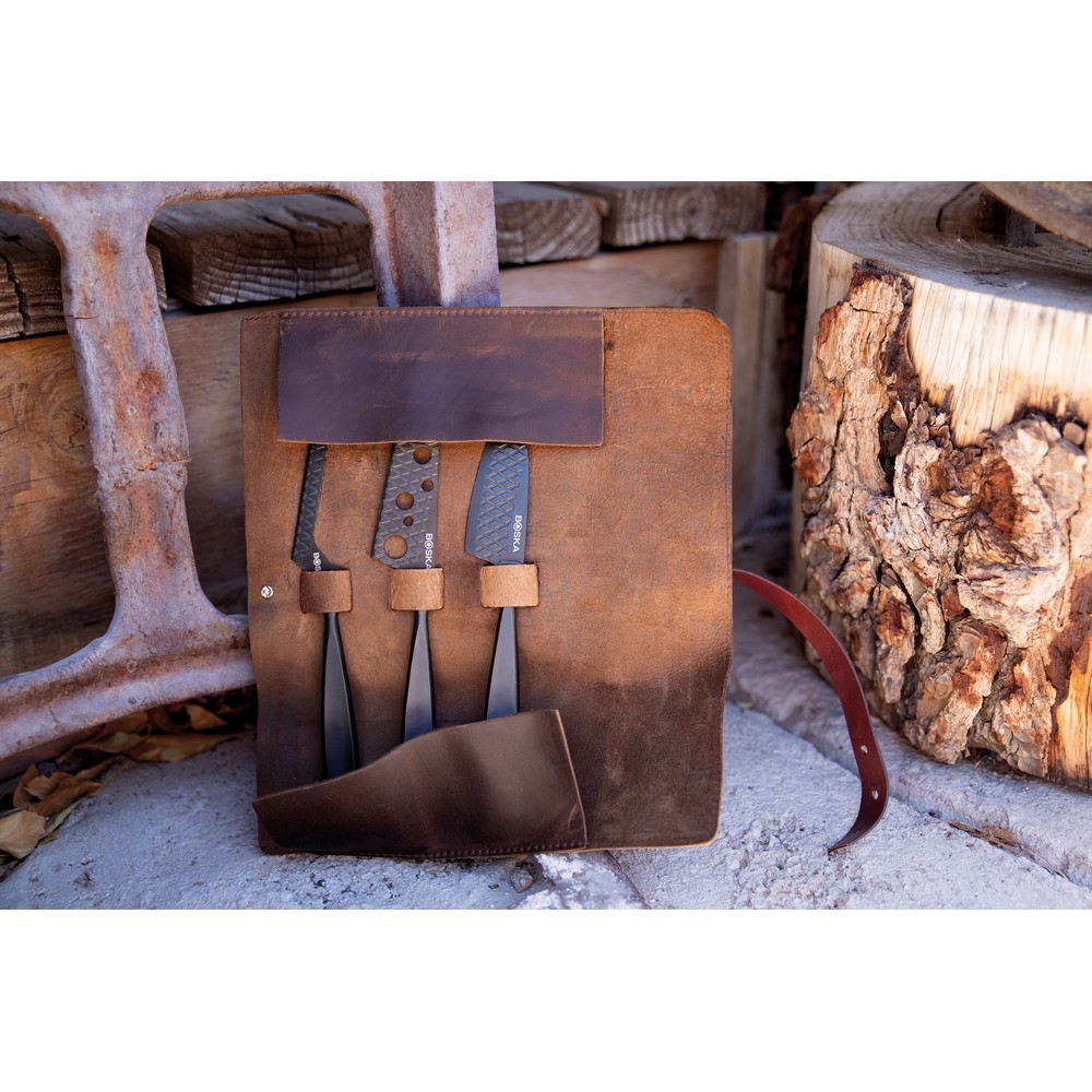 Zestaw do sera, wykonany ze stali nierdzewnej, unikatowy wzór w kształcie diamentów zapobiega przywieraniu sera, skórzane etui w komplecie, posiada 10-letnią gwarancję, wyłącznie mycie ręczne