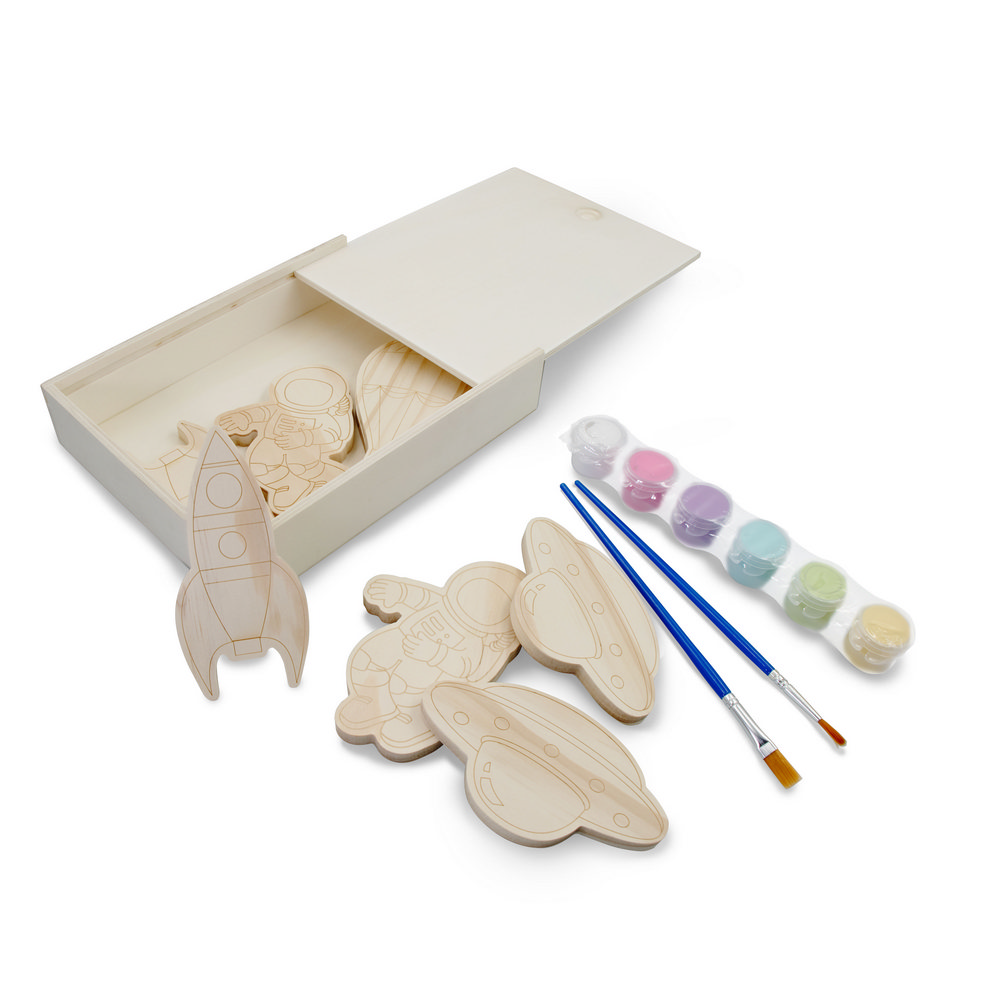 Zestaw drewnianych klocków do malowania, farbki i 2 pędzelki | Priya