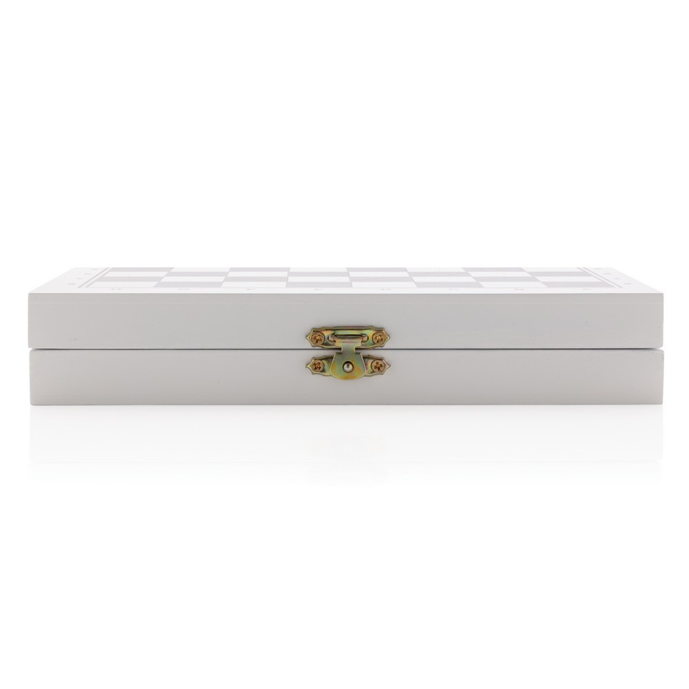 Zestaw gier 3 w 1, w komplecie: szachy, warcaby, tryktrak, wykonane z drewna z certyfikatem FSC®, w pudełku upominkowym z papieru kraftowego certyfikatem FSC®, ślad węglowy produktu: 0,78 kg CO2