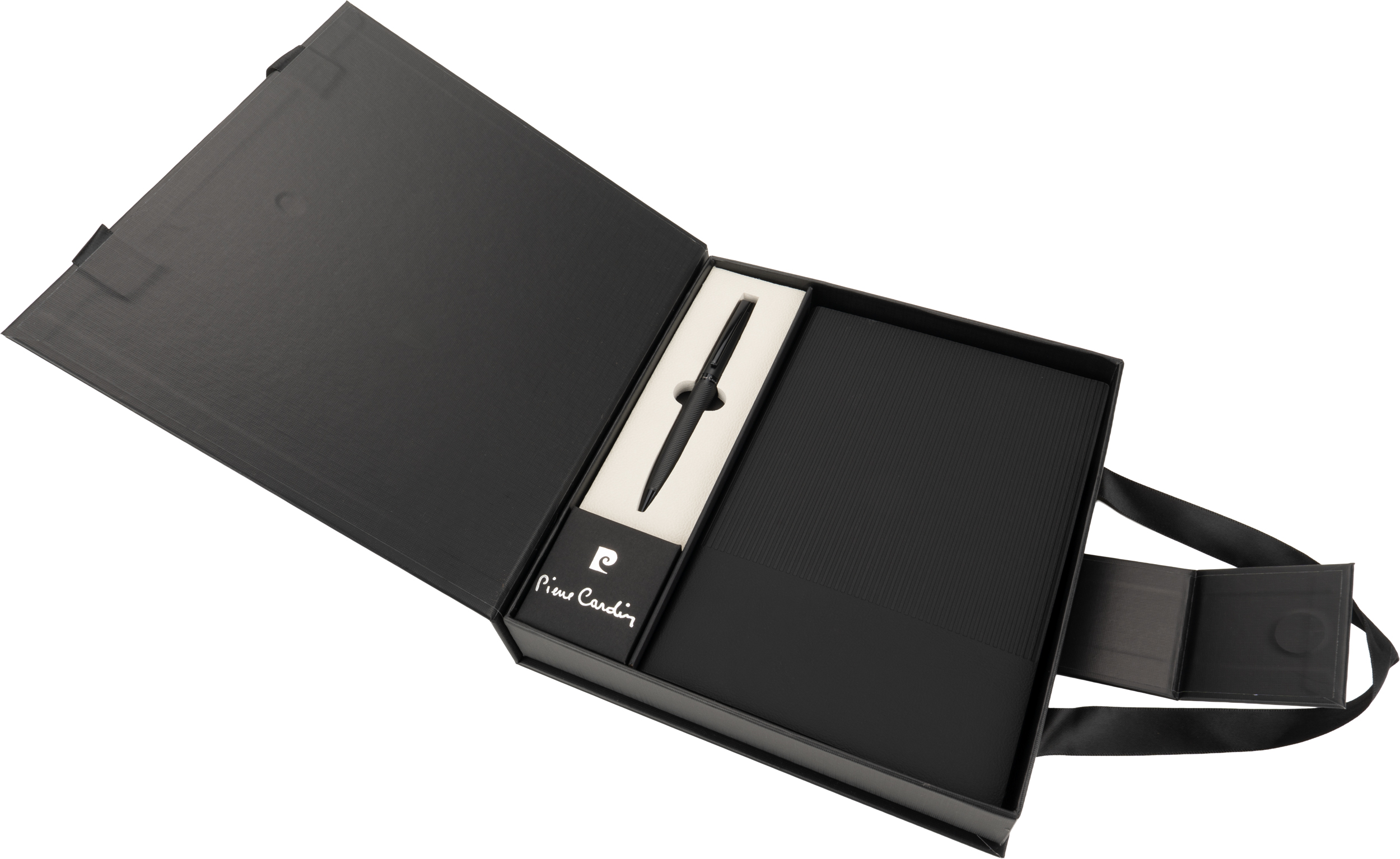 Luksusowy zestaw, składający się notatnika oraz długopisu DENISE. Notatnik posiada 80 kartek w linie o gramaturze 80 g oraz materiałową zakładkę, zakończoną metalową zawieszką z logo Pierre Cardin. Z tyłu notatnika również widnieje wytłoczone logo Pierre Cardin. Długopis wyposażony jest w przekręcany mechanizm oraz niebieski wkład z końcówką 1 mm. Zestaw pakowany w pudełko prezentowe wraz z certyfikatem autentyczności. Notes 14,5 x 1,3 x 21 cm; długopis 1,1 x 13,5 cm