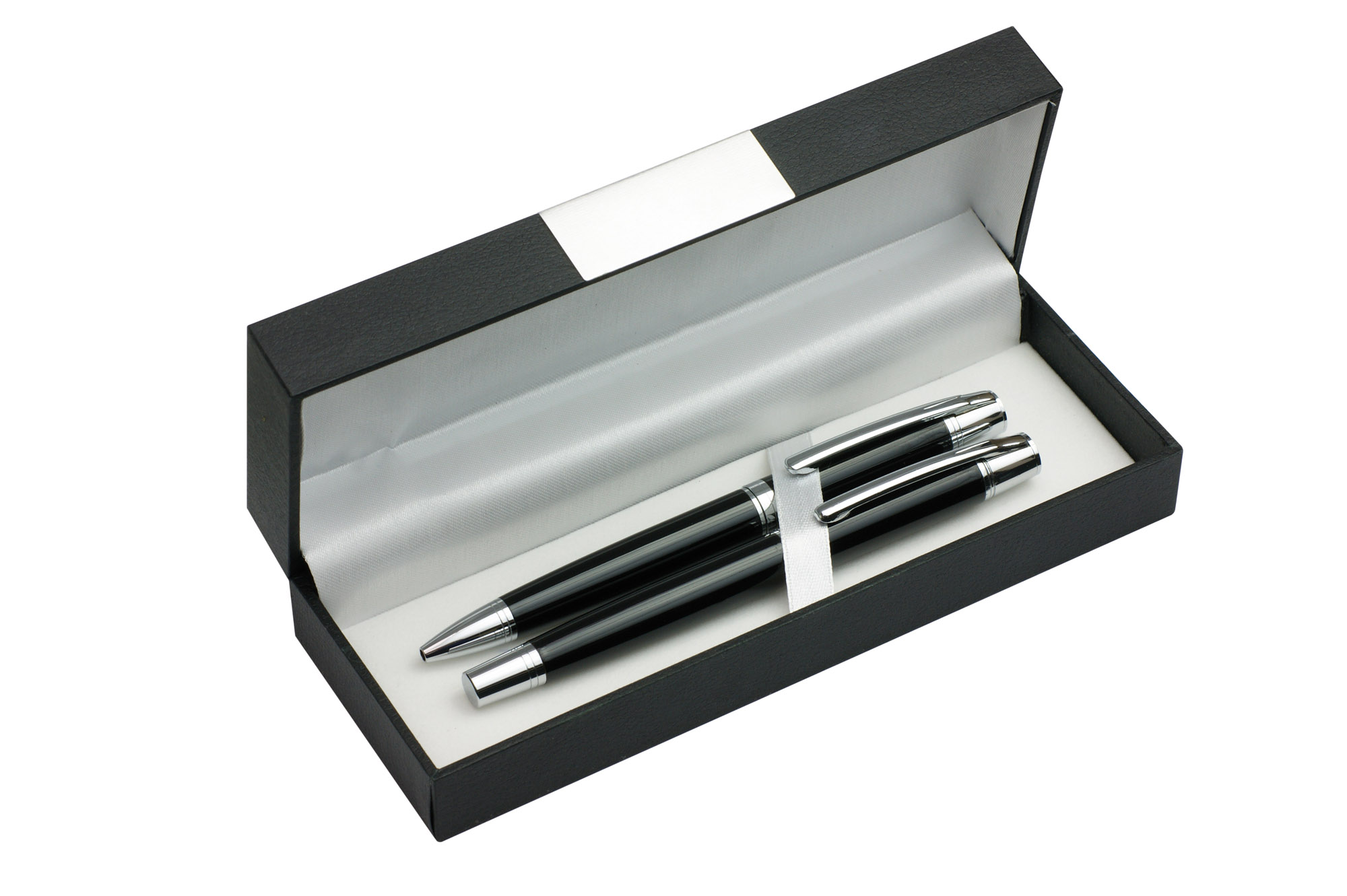 Elegancki komplet piśmienniczy CALIFORNIA składający się z długopisu i pióra kulkowego zapakowanych w etui. Logo wygrawerujemy na blaszce umieszczonej na etui.