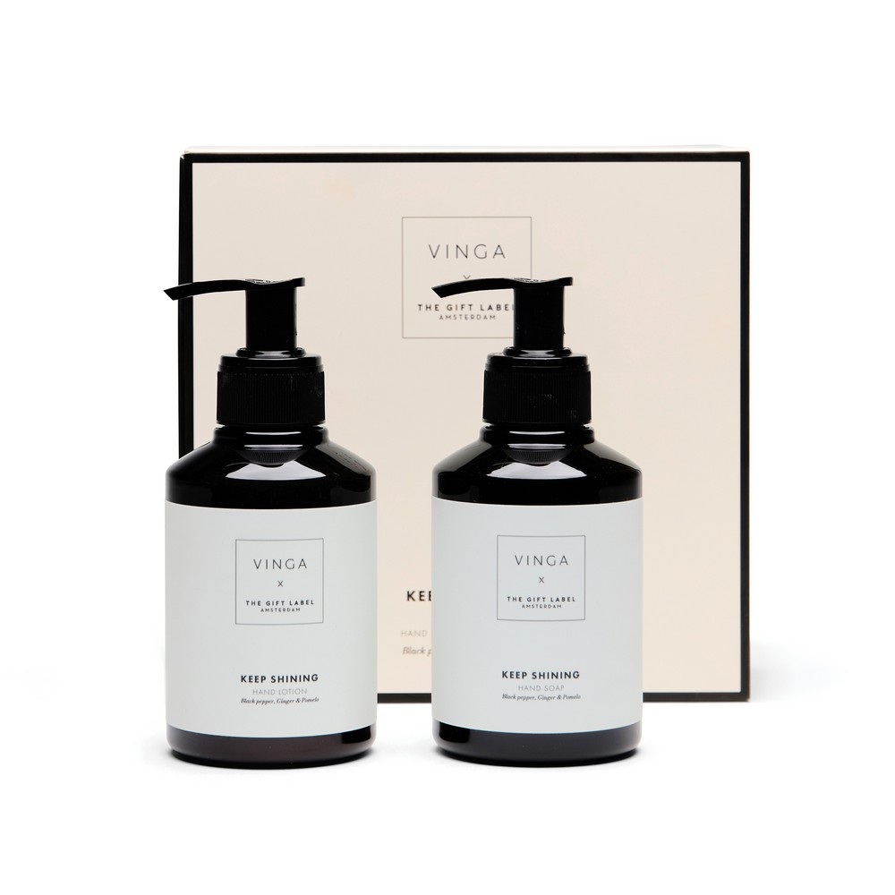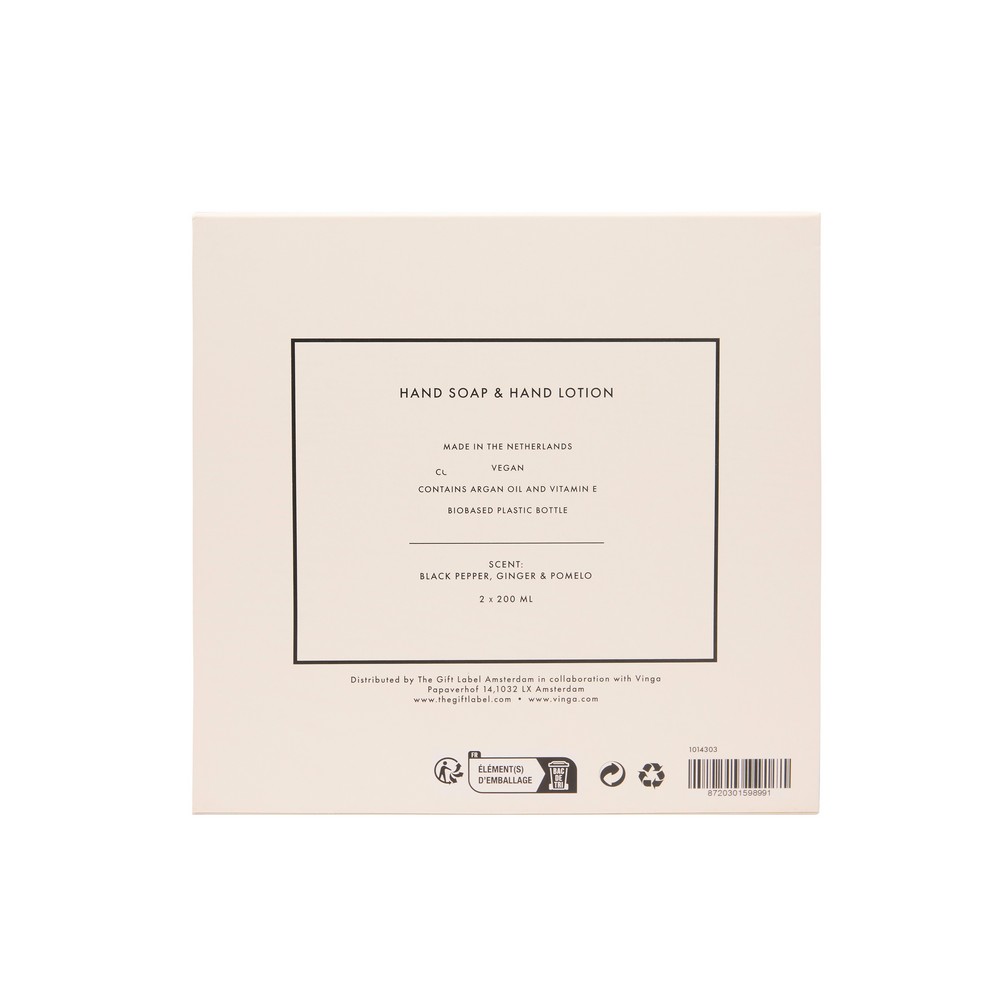 Zestaw kosmetyków 2 el., w komplecie: mydło do rąk 200 ml i balsam do rąk 200 ml, ciepły aromat czarnego pieprzy, imbiru i pomelo, w eleganckim pudełku upominkowym